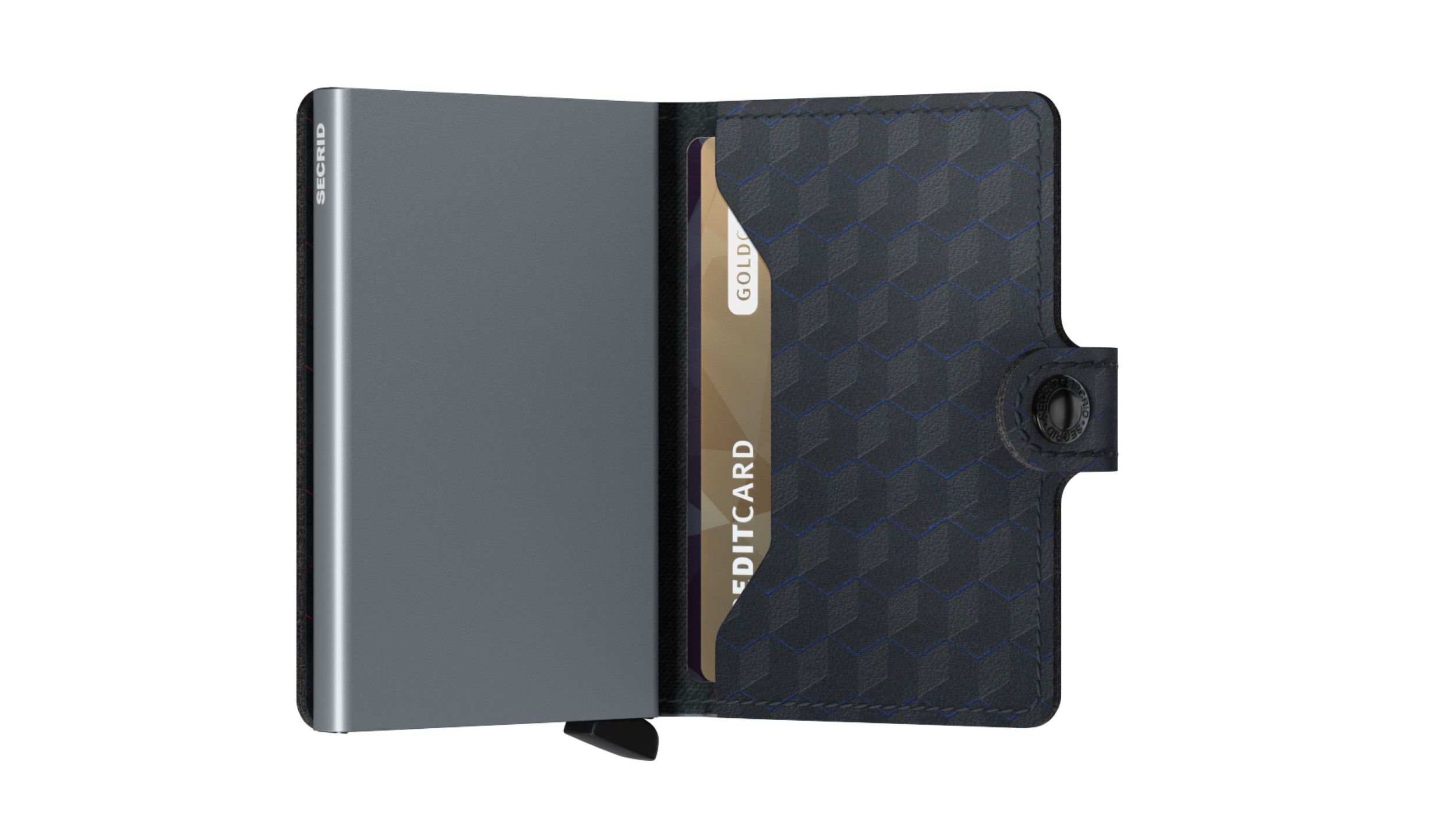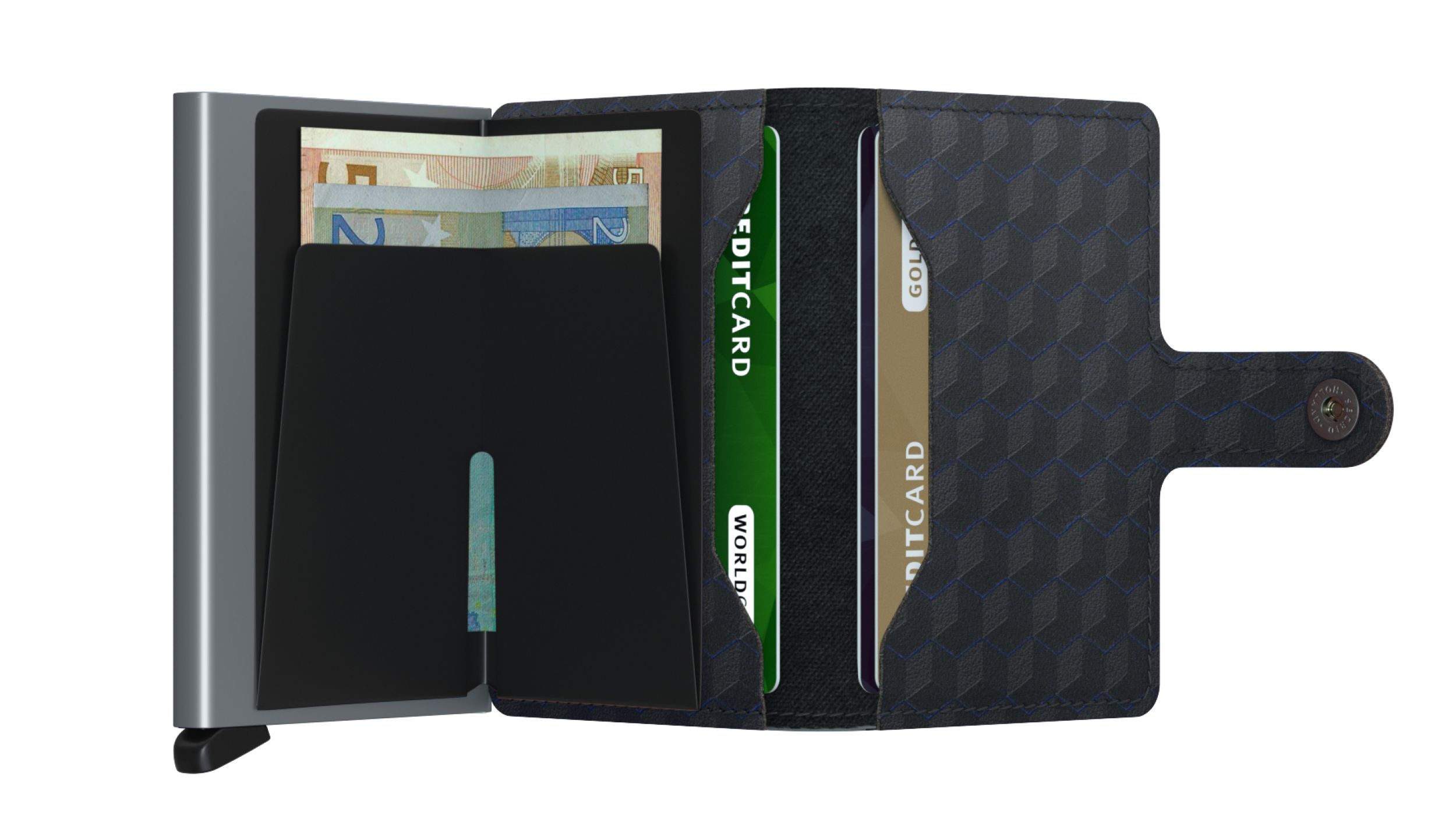 Het gepatenteerde mechanisme geeft met één simpele beweging toegang tot je kaarten: klaar voor gebruik. De aluminium behuizing beschermt kaarten tegen buigen, breken en ongewenste draadloze communicatie.