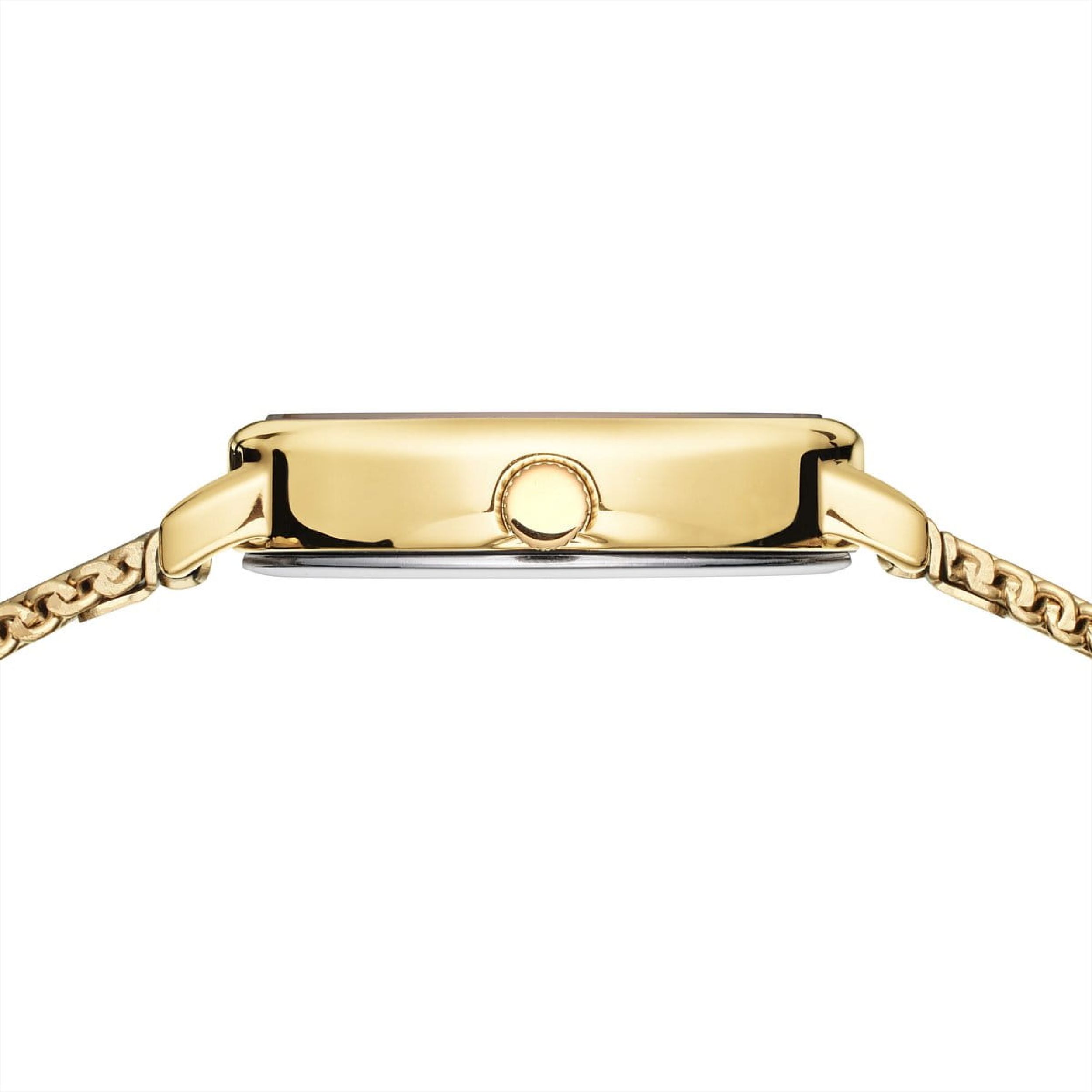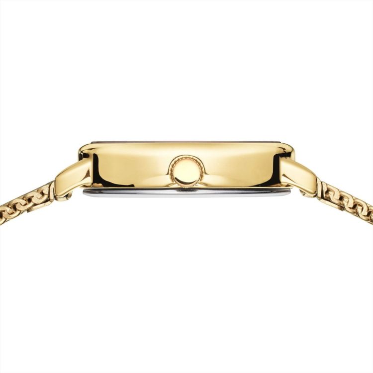 De gouden Milanese band (8 mm breed, 180 mm lang) met een vouwgesp zorgt voor een perfecte pasvorm om de pols. Met precieze kwartsuurwerken en waterbestendigheid tot 3 ATM is dit horloge een tijdloze metgezel voor elke gelegenheid.