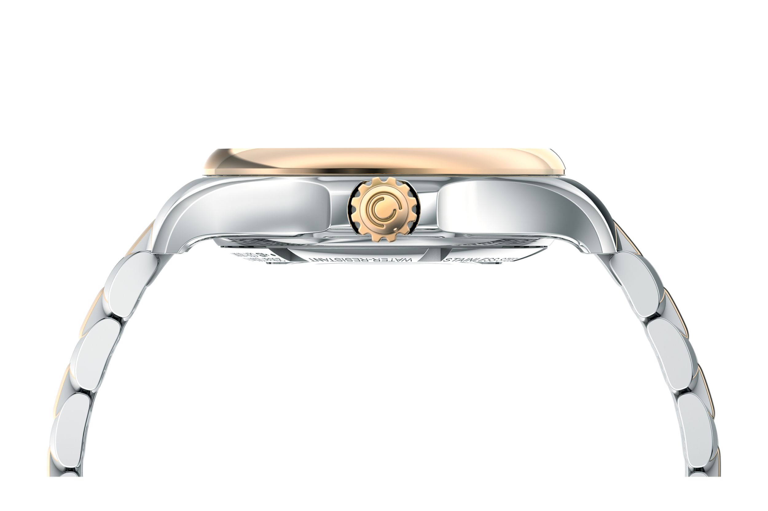 Dit dameshorloge is een klasse apart. Het Powermatic-kaliber heeft niet alleen een gangreserve van 80 uur, maar is ook voorzien van een Nivachron™-balansveer, die een betrouwbare precisie garandeert die niet wordt beïnvloed door magnetische velden. Fonkelende diamanten en verfijnde details zorgen voor tijdloze elegantie.