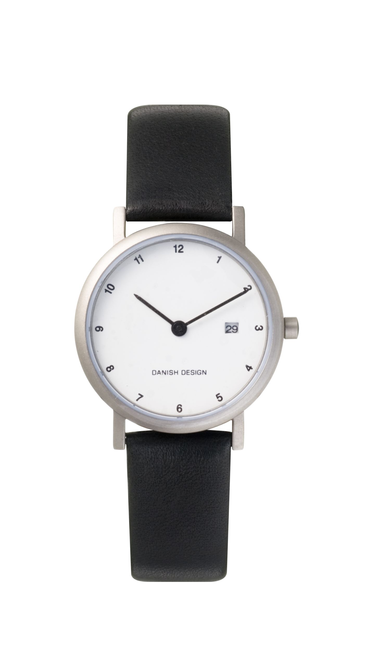 Dit Deens ontwerp horloge heeft een titanium kast met een witte wijzerplaat, mineraalkristalglas en een zwarte leren band. Een klassiek uurwerk van Deens ontwerp dat voor elke gelegenheid gebruikt kan worden.