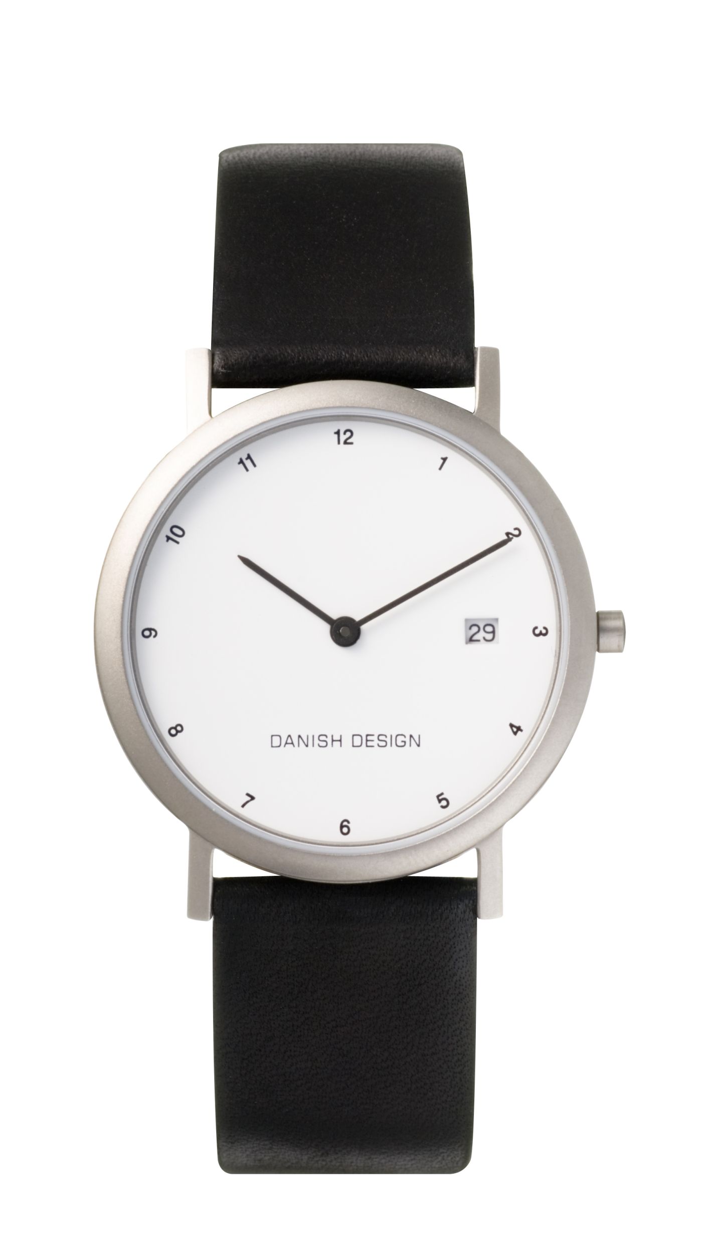 Dit Deens ontwerp horloge heeft een titanium kast met een witte wijzerplaat, mineraalkristalglas en een zwarte leren band. Een klassiek uurwerk van Deens ontwerp dat voor elke gelegenheid gebruikt kan worden.