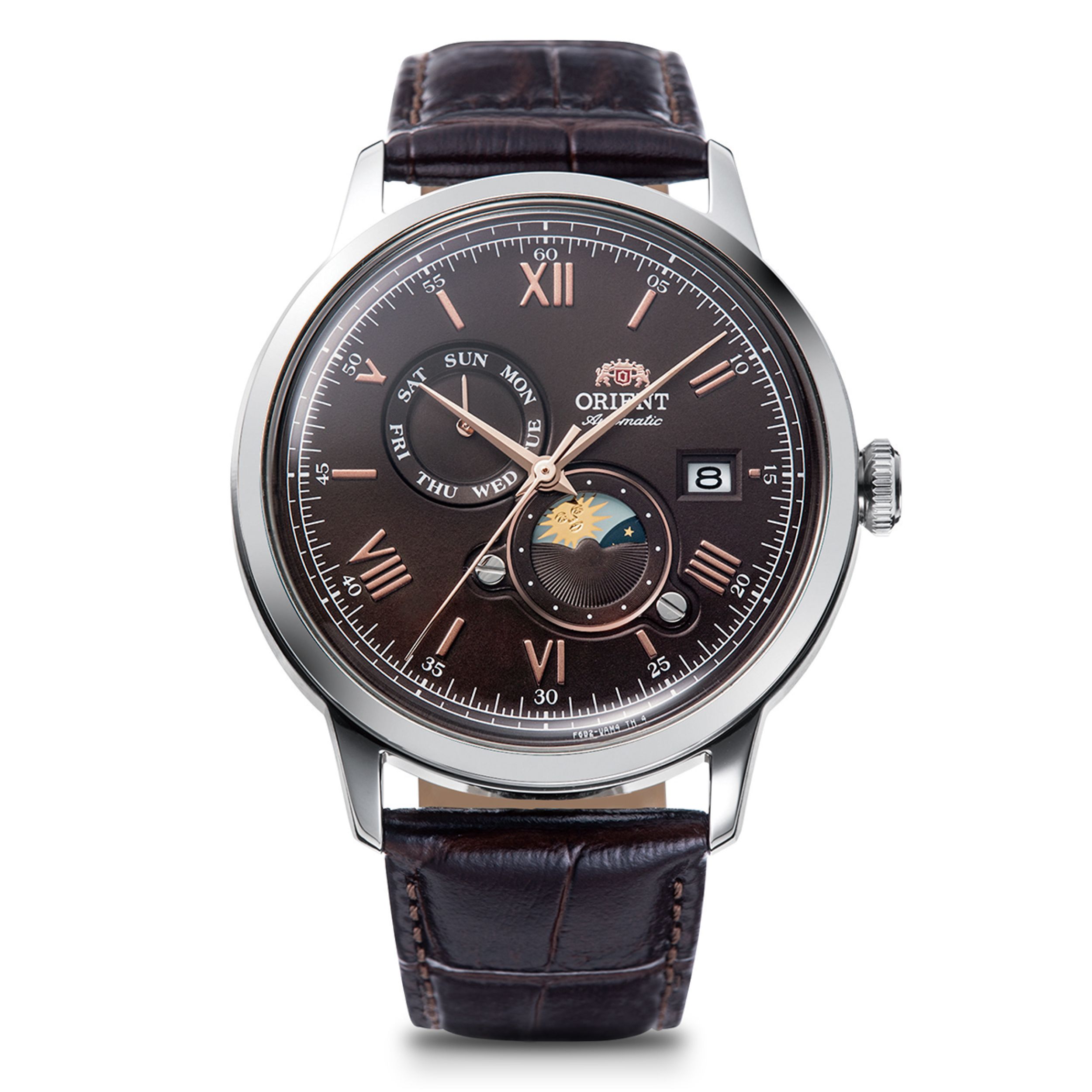 Deze serie bestaat uit vier kleurvarianten die magische scènes van zon en maan in de ochtend, middag, avond en nacht uitbeelden; deze bruine wijzerplaat roept de maan op aan de nachtelijke hemel.