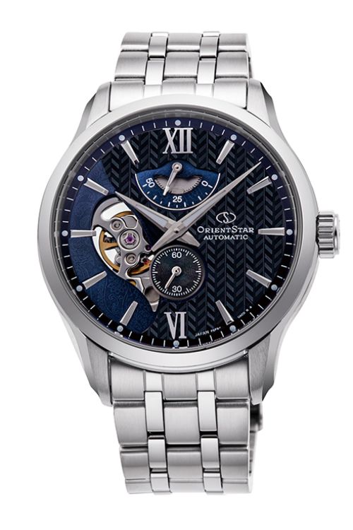 De nieuwe Layered Skeleton heeft een wijzerplaat met twee lagen met motieven die materiaal van pakken bevatten. De bovenste laag wijzerplaat die het buitenste materiaal van een pak vertegenwoordigt, is ontworpen met een visgraatpatroon, terwijl de onderste laag een paisley-patroon heeft met een glans die doet denken aan een cupra-voering. De contrasterende stoffen zorgen voor een uniek accent aan het algehele uiterlijk van het horloge. De half-skeletopening op de wijzerplaat is paisleyvormig, en het open-werkontwerp van het vermogensreservedisplay onthult ook de interne werking van het mechanische uurwerk. Dit gevoel van diepte, gecombineerd met de textielpatronen, zorgt voor een opvallende uitstraling. En de zachte rondingen van de lugs roepen het kuiltje van een stropdas of de val van stof op. Dit stijlvolle, nieuwe ontwerp vormt het perfecte accent voor elke zakelijke gelegenheid.