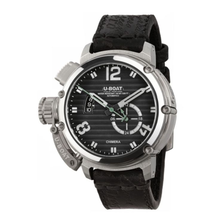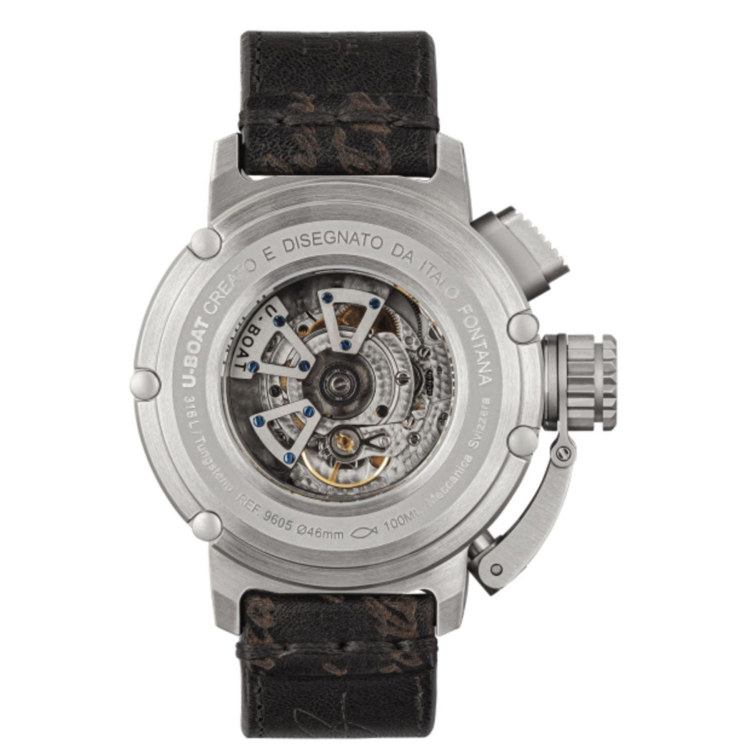 Zwitserse automatische mechanische ETA 2824 Top Soigné, uitgewerkt en aangepast volgens U-BOAT specificaties. Frequentie 28.800 omwentelingen/uur (4Hz). Gangreserve 38 uur. 25 juwelen. U-BOAT rotor in messing en wolfraam, perlage verwerking en gerhodineerd. Geschroefde bruggen.