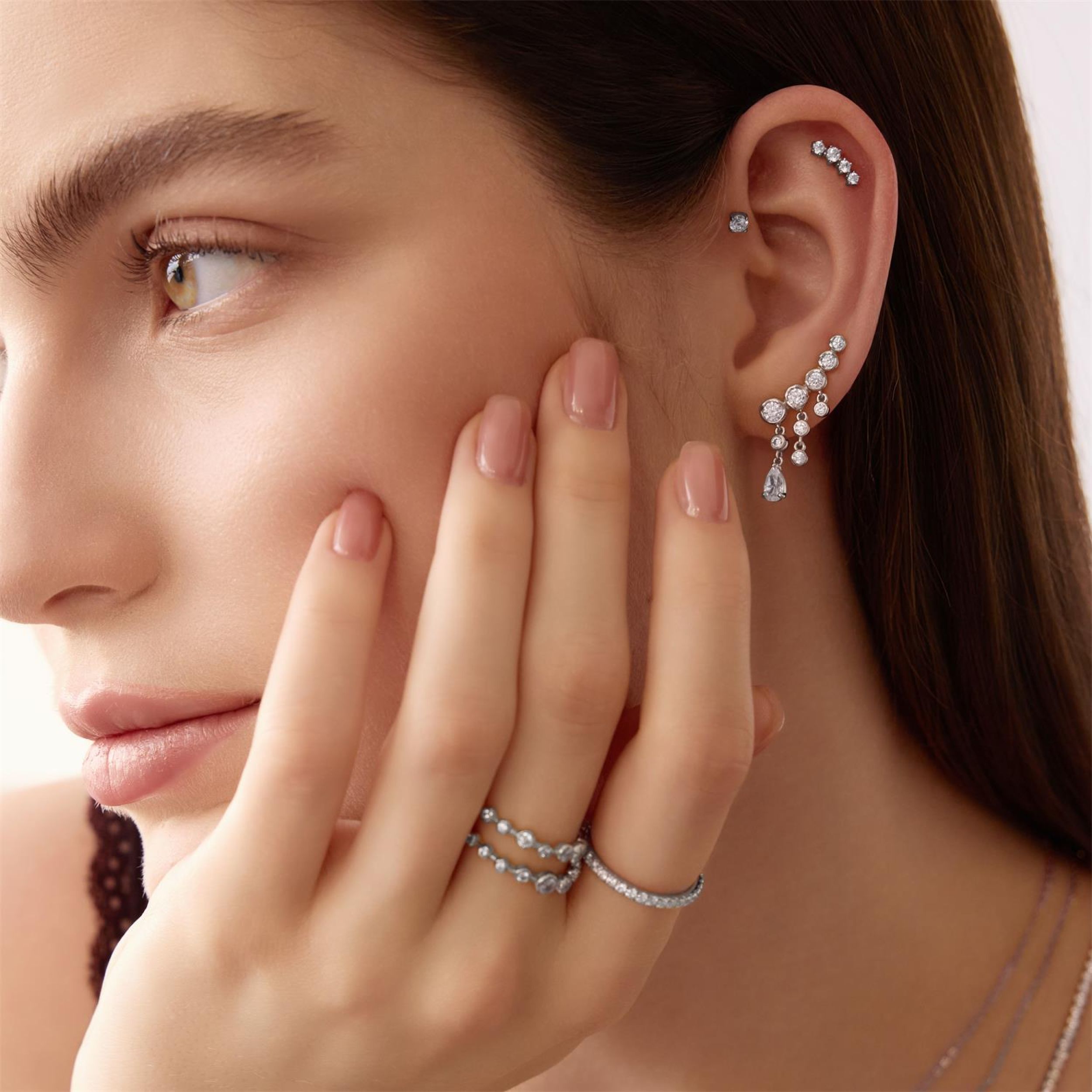Een verzameling voor de vrouw die schoonheid vindt waar anderen slechts een blik opvangen. De Starlit Drops-collectie weerspiegelt deze scherpzinnige aard via hemelse accenten: vloeiende druppelontwerpen die het licht vangen, fijne sterrenaccenten en onze kenmerkende initiaalkettingen van A tot Z. Met luchtige lagen vangen deze stukken dat stille moment waarop haar veelbetekenende glimlach alledaagse scènes verandert in iets bijzonders.