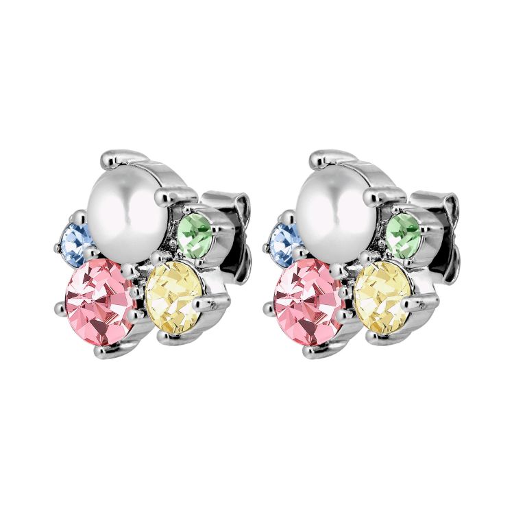 MINNIE - is een oorbel van stud post, met meervoudige ronde kristallen in verschillende maten en kleuren. Draag ze alleen of samen met andere oorbellen. Super elegant, maar toch discreet. Ongeveer 12 mm lang. Lichaam gemaakt van gepolijst messing, stijlpen van chirurgisch staal. Hier getoond in een mix van pasteltinten met een zilvertint afwerking. DEENS ONTWERP - vrij van cadmium, lood en nikkel.