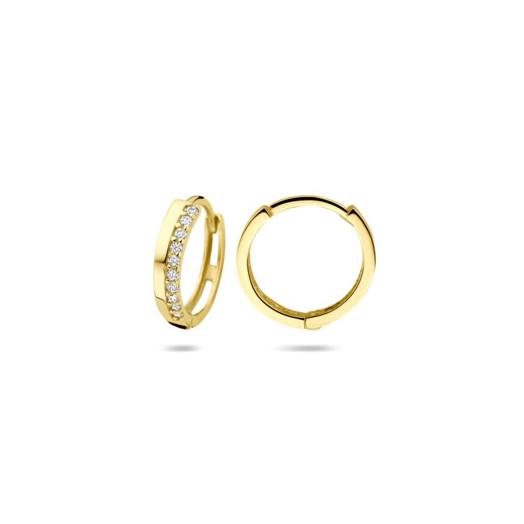 14k Geelgouden klapoorringen uitgevoerd met zirkonia.