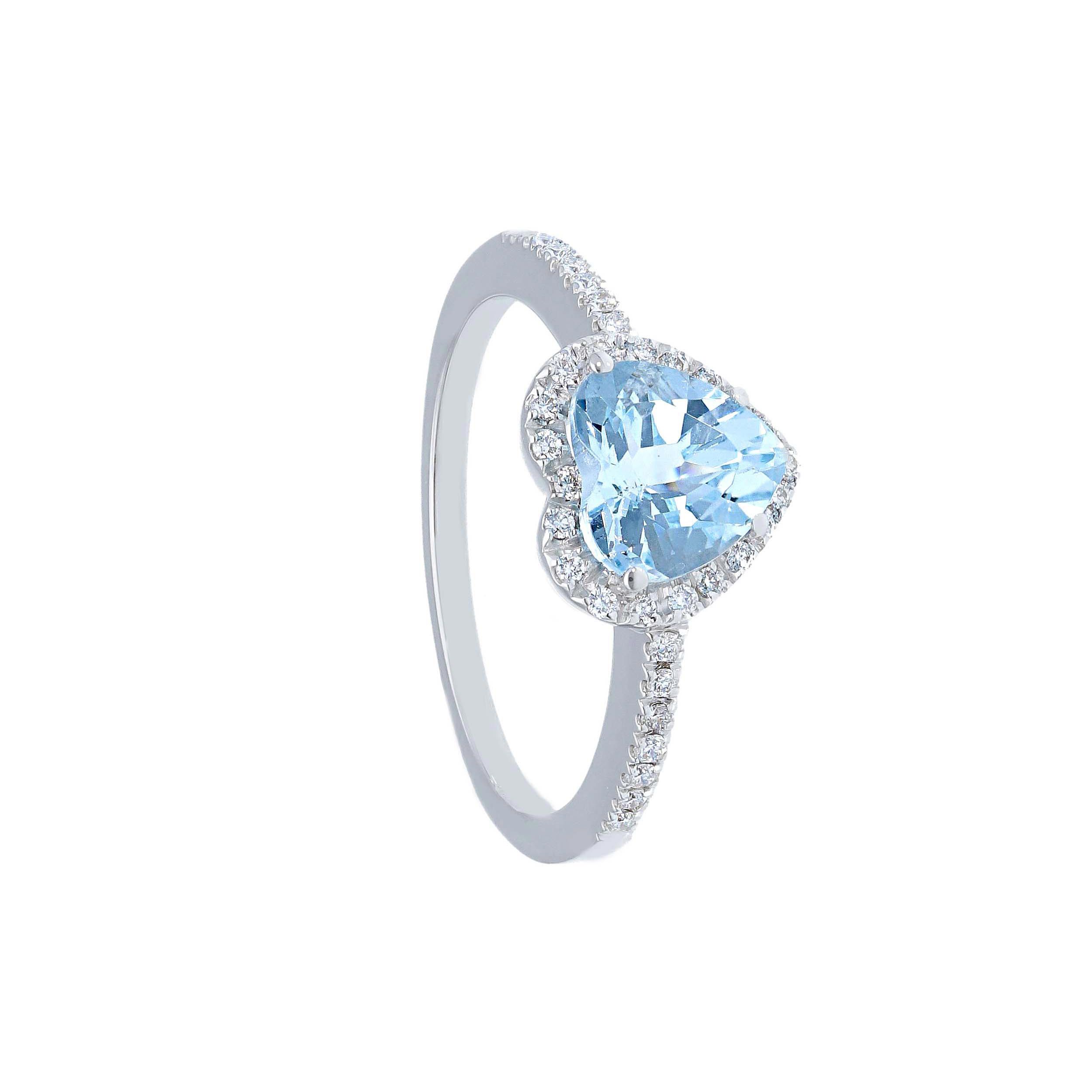 Gouden Ring Dames 18 Karaat Witgoud 0,14 G SI/ 1-0,96 Aquamarine