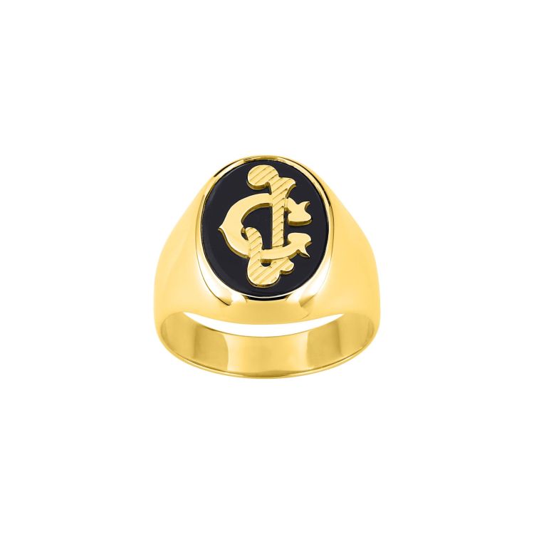 Gouden Zegelring 18 Karaat met Onyx met 2 Letters T T