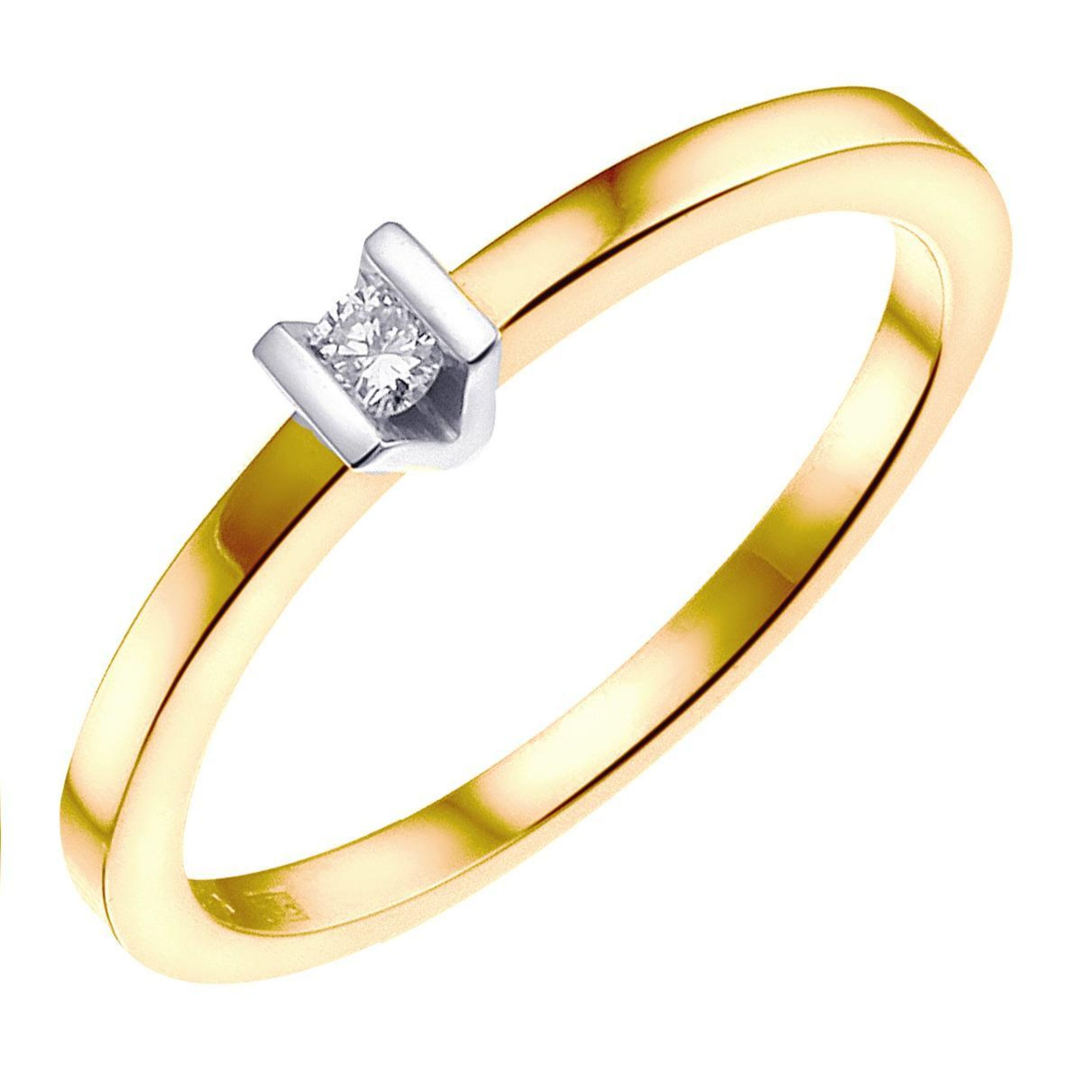 Wij staan voor kwaliteit en werken alleen met 14 & 18 karaats goud en diamant. Klemzetting Solitairring 1-0.05 Crt, 14 Krt Bicolor.