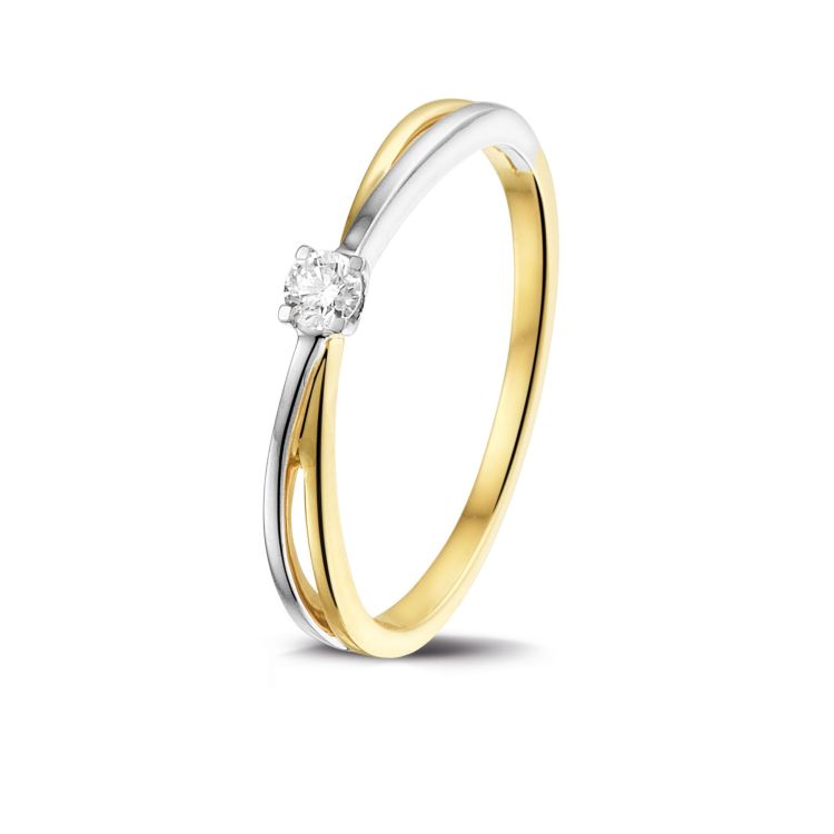 Wij staan voor kwaliteit en werken alleen met 14 & 18 karaats goud en diamant. Gouden Solitair 14Krt bicolor Geel-Witgoud
