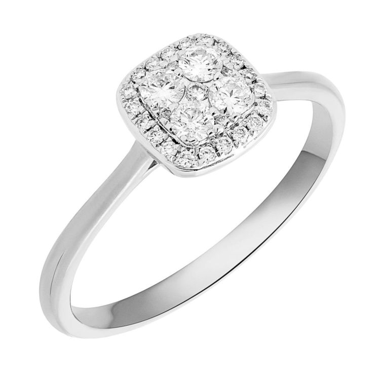 Wij staan voor kwaliteit en werken alleen met 14 & 18 karaats goud en diamant. Cluster Solitairring 28-0.26 Crt, 14 Krt Witgoud.