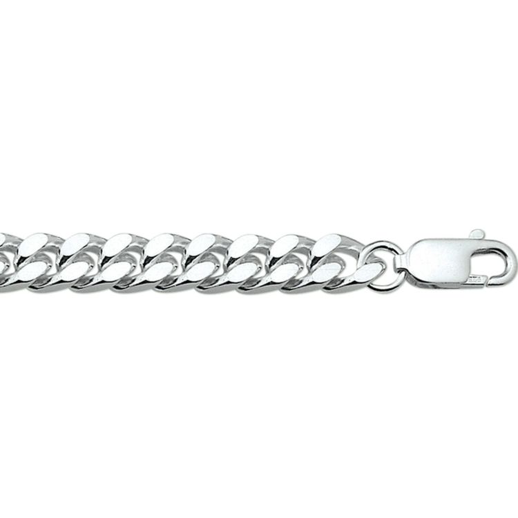 Zilveren lengte artikel met geslepen gourmette schakel. De schakelbreedte is 7.5mm.