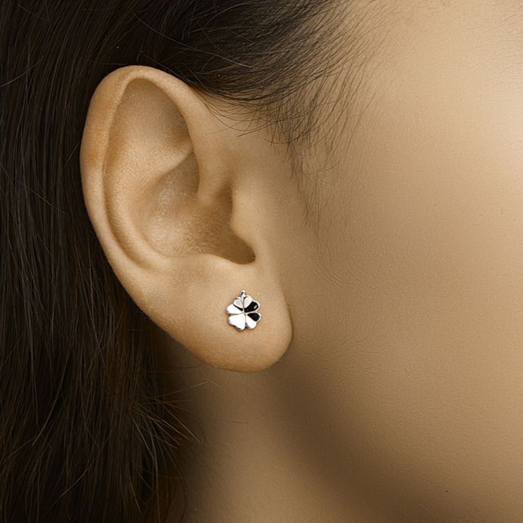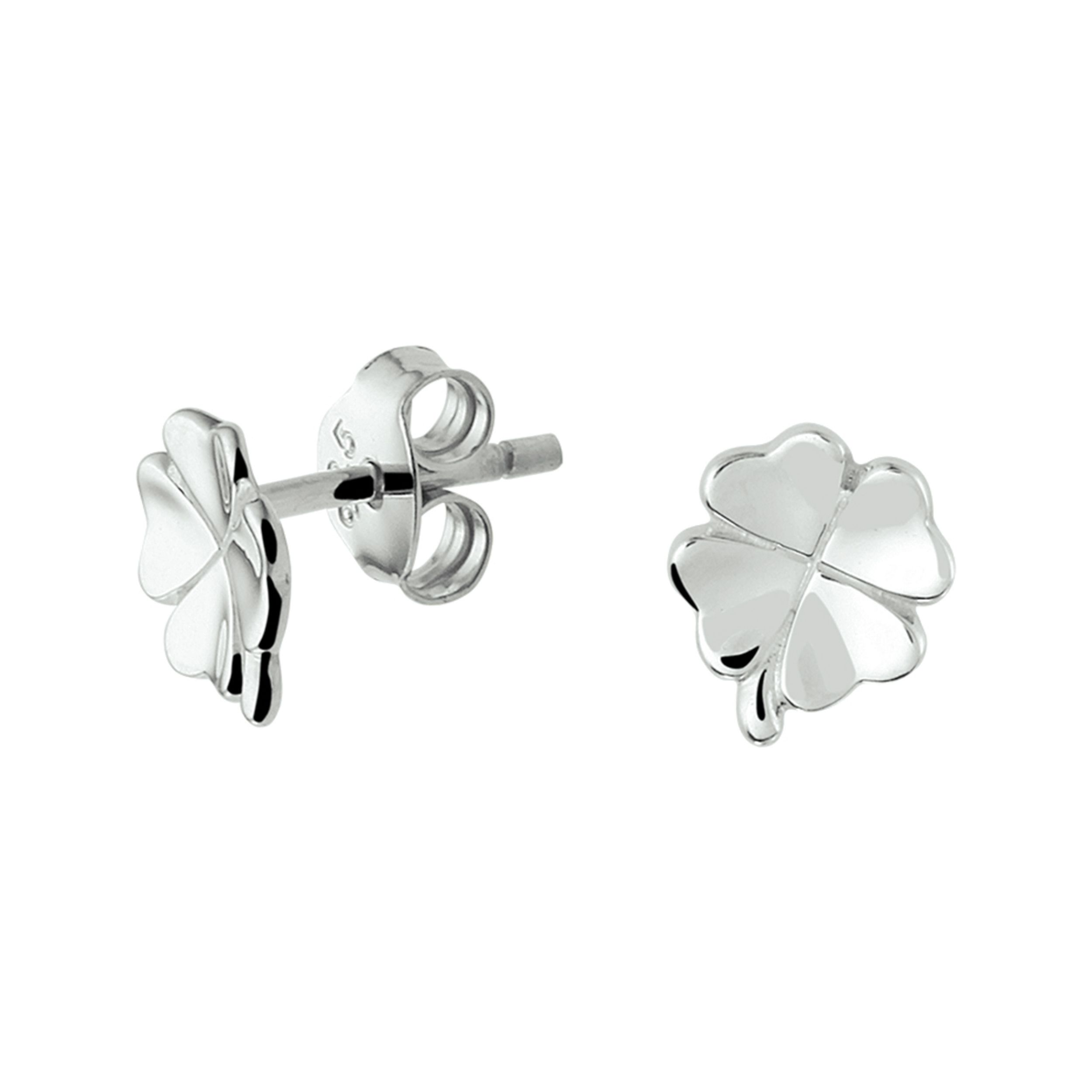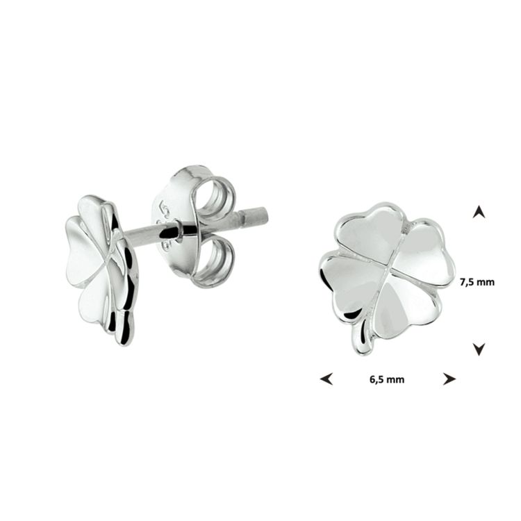 Gerhodineerd 925 zilveren oorknoppen in de vorm van een klavertje. De afmeting van de oorknoppen is 7.5x6.5mm.