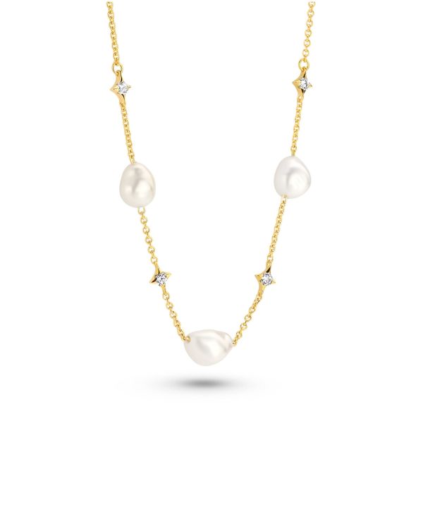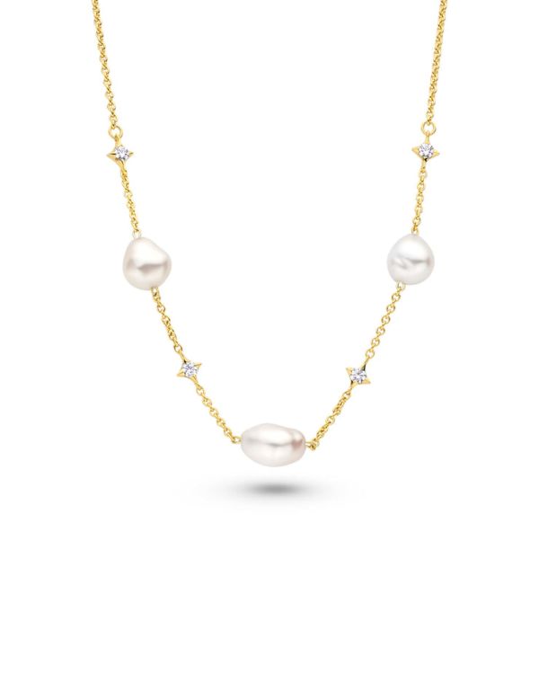 Onze Bella Pearl ketting combineert de schoonheid van duurzame zoetwaterparels in barokstijl met verantwoord sterling zilver 925. De schoonheid van de parels in combinatie met briljante zirkonia geeft de ketting een buitengewone en onafhankelijke ontwerptaal. De natuurlijke elegantie van deze creatie maakt het een tijdloos accessoire dat bij elke gelegenheid kan worden gedragen. Elk detail is met de grootste zorg en liefde vervaardigd om een ketting van uiterst fijne kwaliteit te creëren.