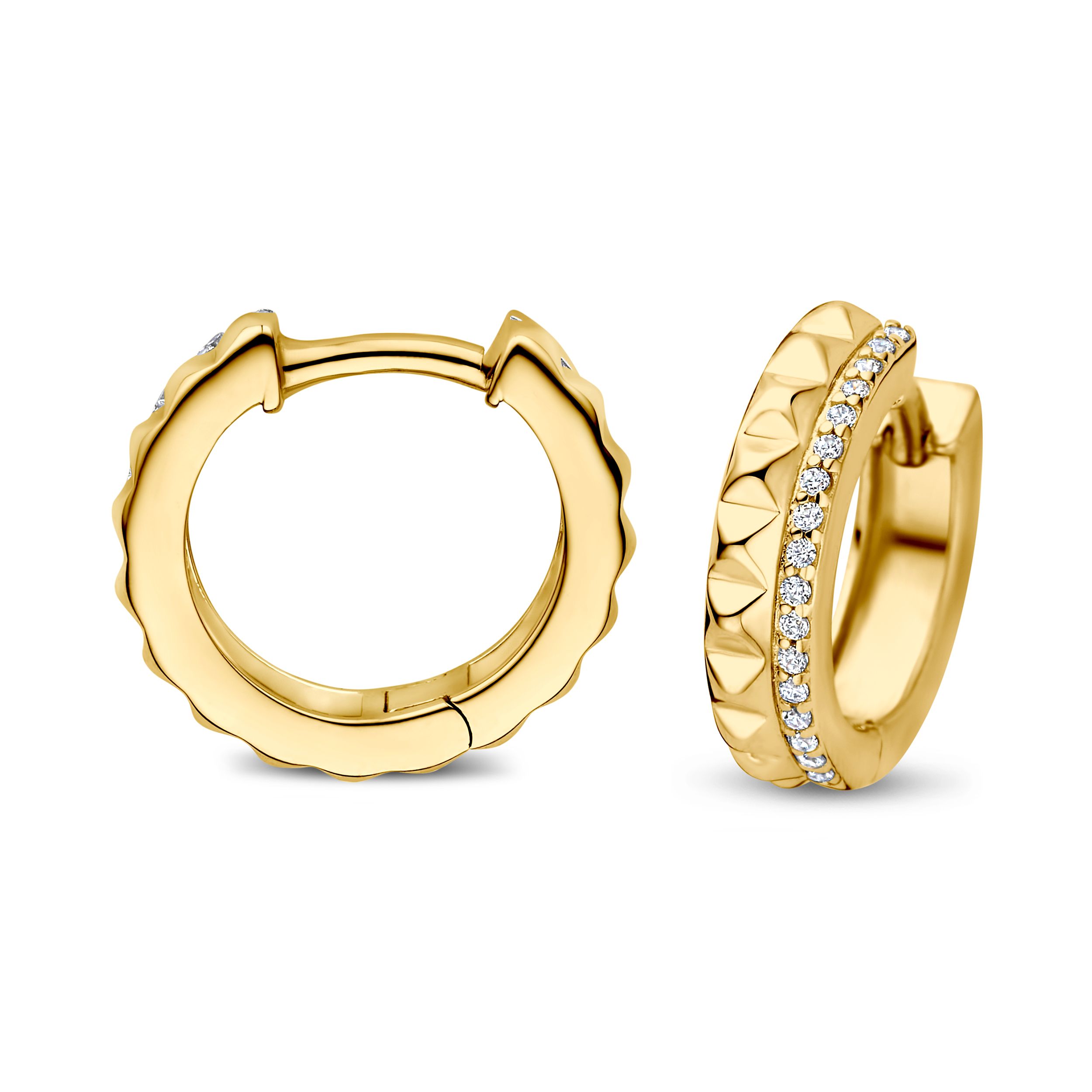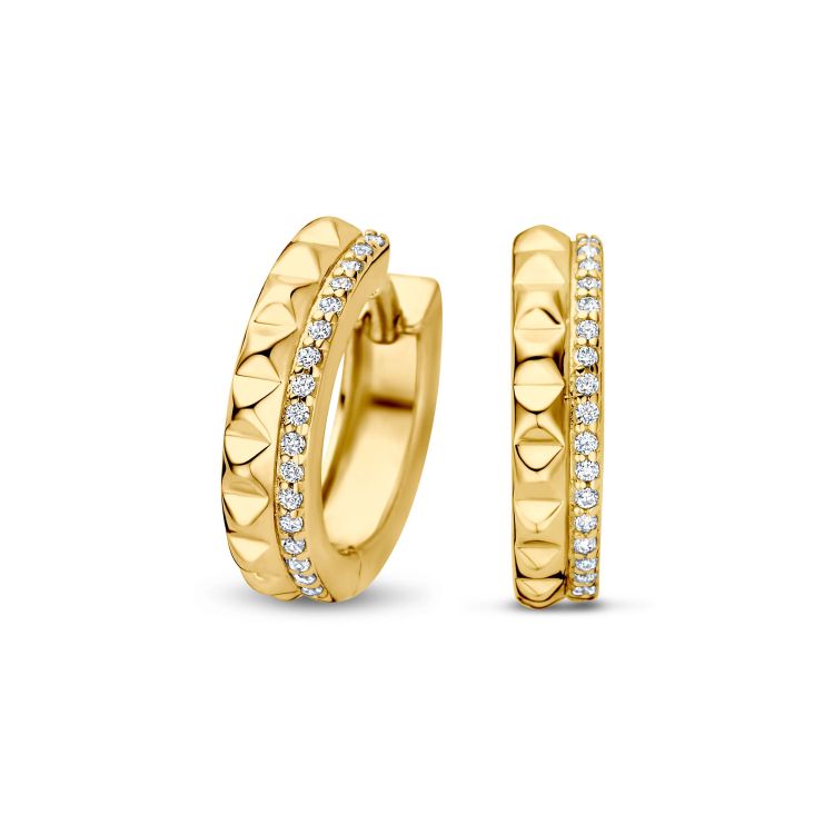 De fijne 14 mm ringen zijn licht, comfortabel en toch expressief. De geometrische structuur vangt het licht bij elke beweging en onderstreept je uitstraling – of het nu in het dagelijks leven is, op kantoor of als je uitgaat. Een tijdloos ontwerp voor vrouwen die aanwezigheid tonen zonder luidruchtig te hoeven zijn.