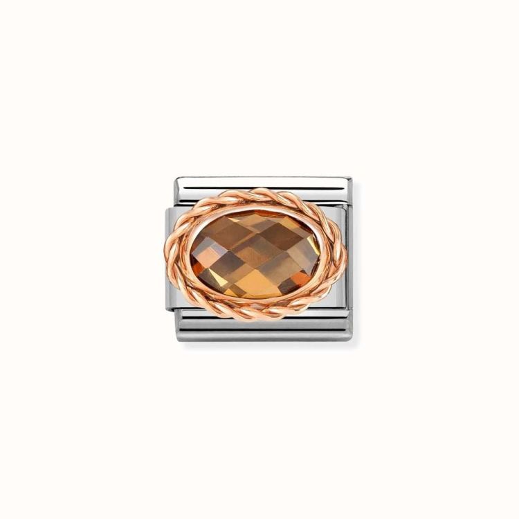 Originele nominatielink voor Composable Classic Bracelets in roestvrij staal en met 9K roségouden twisted setting en gefacetteerde Smoky Cubic Zirconia. Verkrijgbaar in verschillende kleuren. Gemaakt in Italië. Deze Links zijn zowel elegant als verfijnd – voeg deze edelstenen nu toe aan je armband.