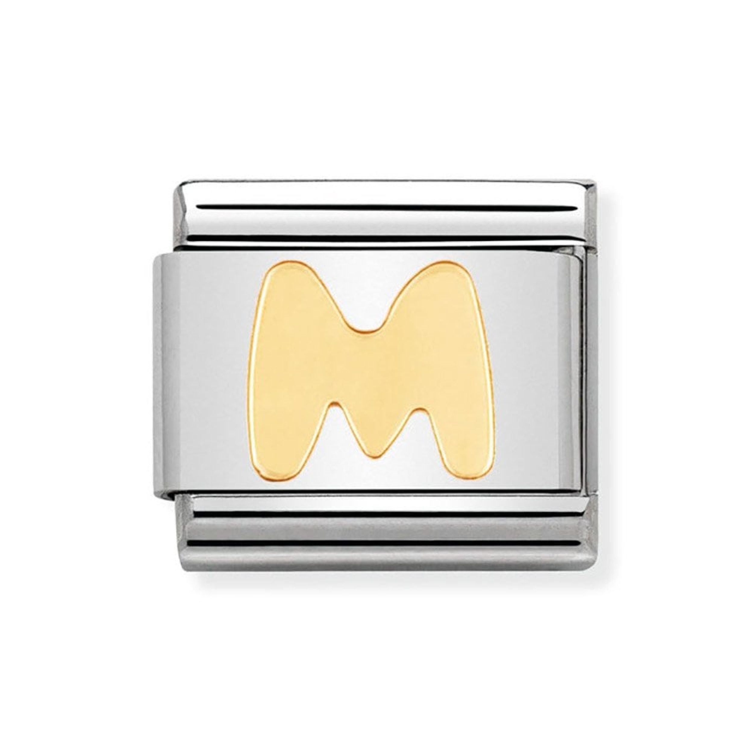 Originele bedel voor Nominatie's Composable Classic Armband met het letter-alfabetsymbool in roestvrij staal en geelgoud gebonden. Beschikbare Charm-versies: A-Z. Gemaakt in Italië. Geef je initialen aan de mensen van wie je houdt.