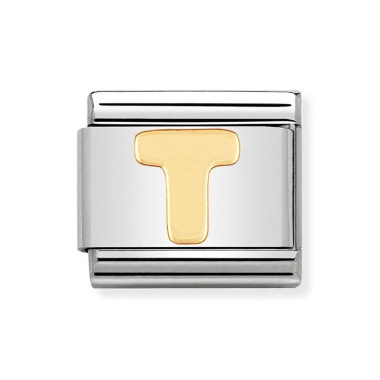Originele bedel voor Nominatie's Composable Classic Armband met het letter-alfabetsymbool in roestvrij staal en geelgoud gebonden. Beschikbare Charm-versies: A-Z. Gemaakt in Italië. Geef je initialen aan de mensen van wie je houdt.