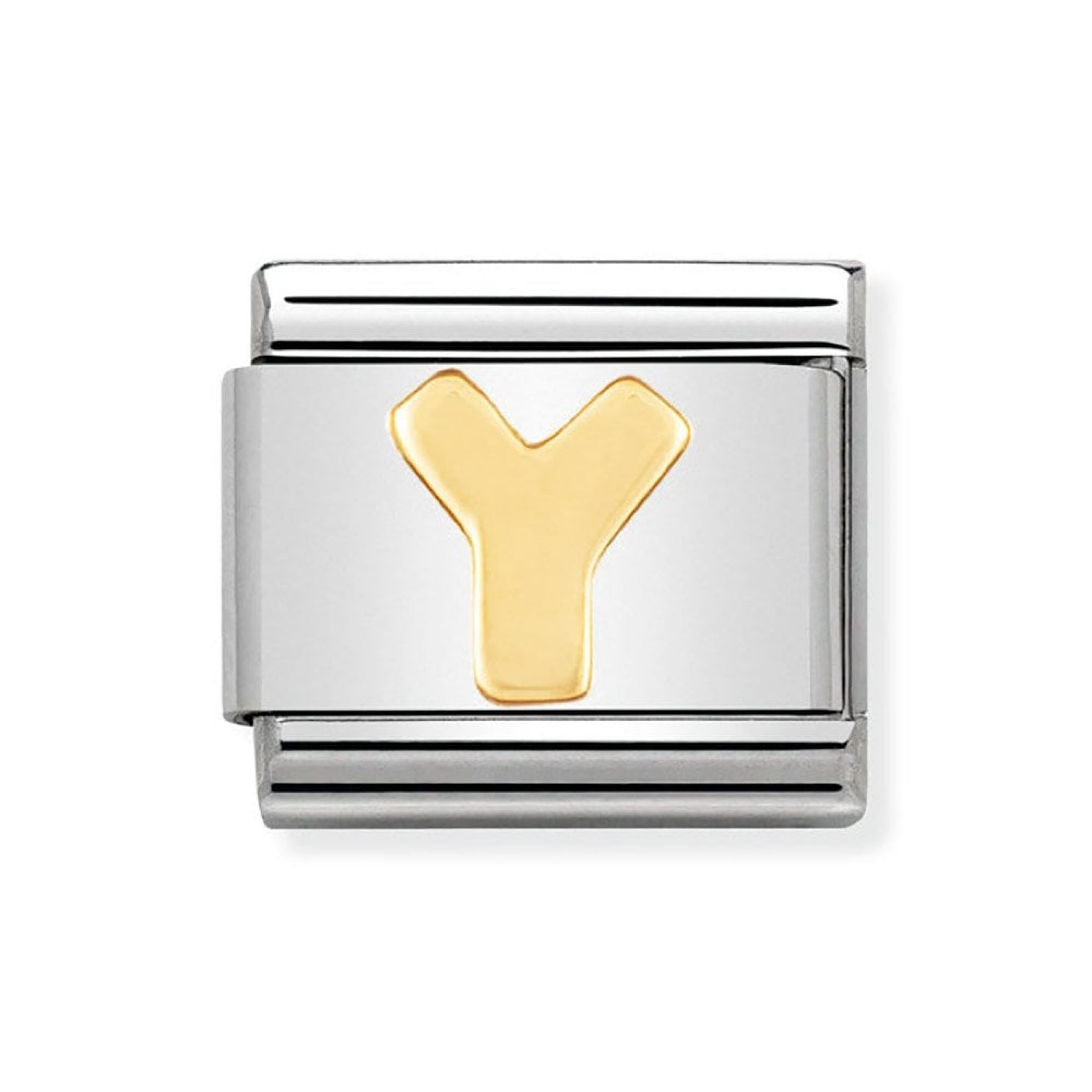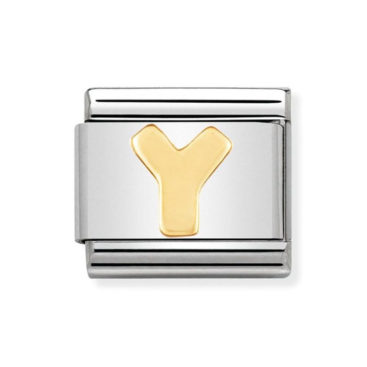 Originele bedel voor Nominatie's Composable Classic Armband met het letter-alfabetsymbool in roestvrij staal en geelgoud gebonden. Beschikbare Charm-versies: A-Z. Gemaakt in Italië. Geef je initialen aan de mensen van wie je houdt.