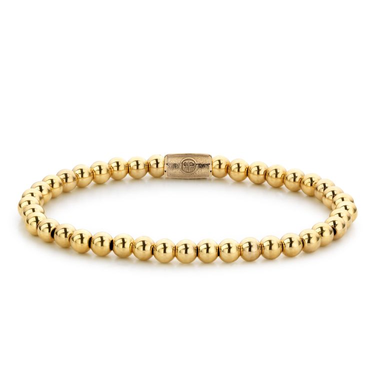 Edelstenen bead armband, handgemaakt van 4mm stenen met een 18 karaat goud ion-plated edelstalen sluiting. Het Rebel & Rose sieraad is makkelijk te combineren met andere zilveren, leren of kralenarmbanden.