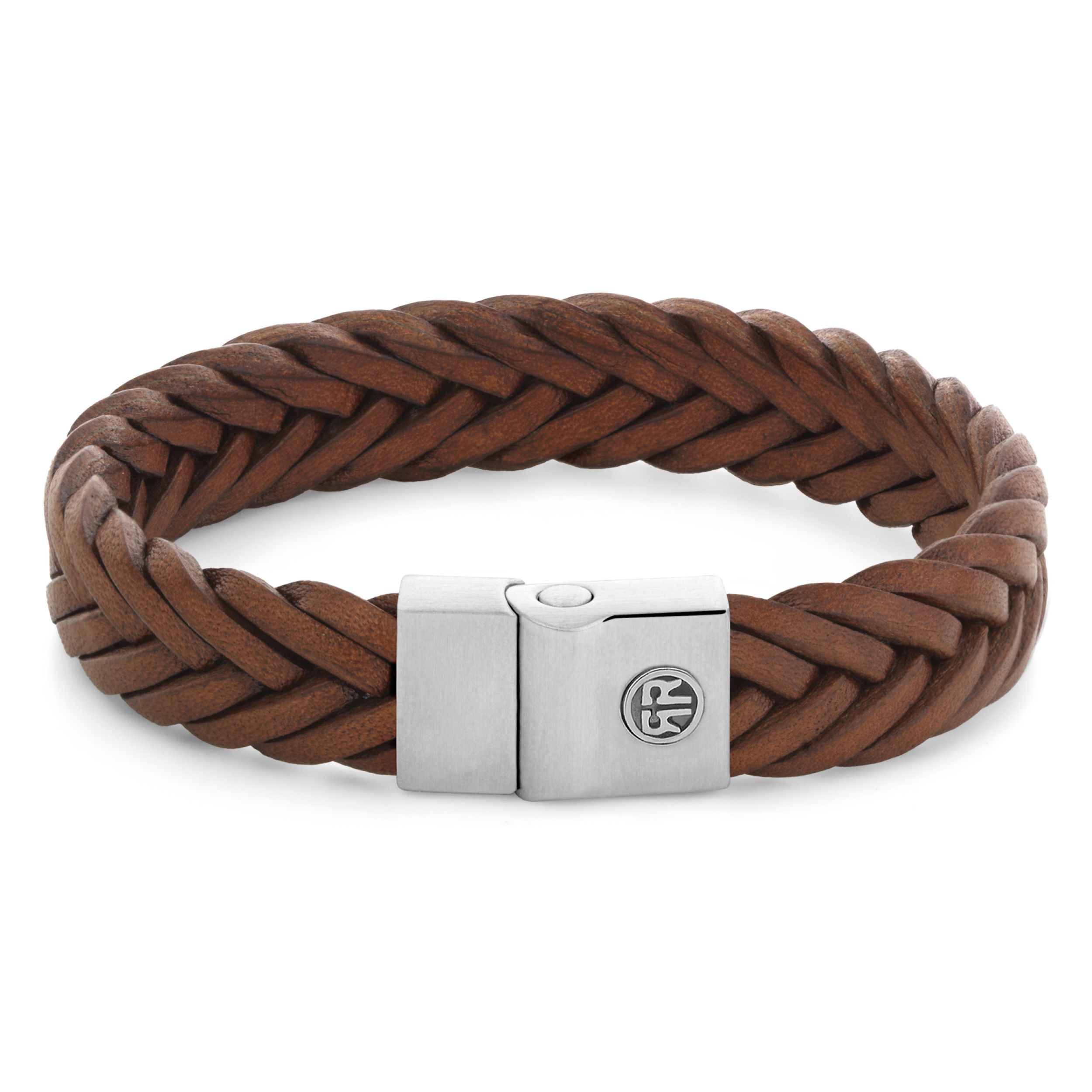 De Full Metal Premium-armband van Rebel and Rose is een leren armband van 12 mm breed met een roestvrijstalen sluiting. Het R&R-logo wordt in 3D op de sluiting aangebracht. De unieke (PSR*) sluiting bestaat uit twee onderdelen die perfect in elkaar passen, zonder dat gereedschappen zoals magneten nodig zijn. Het leer wordt met de hand gelooid en gevlochten door de ambachtslieden van Rebel en Rose met grote zorg en vakkundigheid. Meet de omtrek van je pols en bekijk de maattabel voor de juiste keuze. De armbanden combineren goed met onze parelarmbanden. (*PSR = Duw-Schuif-Loslaten)