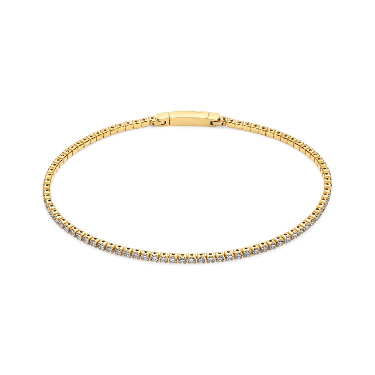 Armband gemaakt van 18 karaats verguld geplateerd 925 sterling zilver, gepolijst oppervlak en facetgesneden witte zirkonia.
