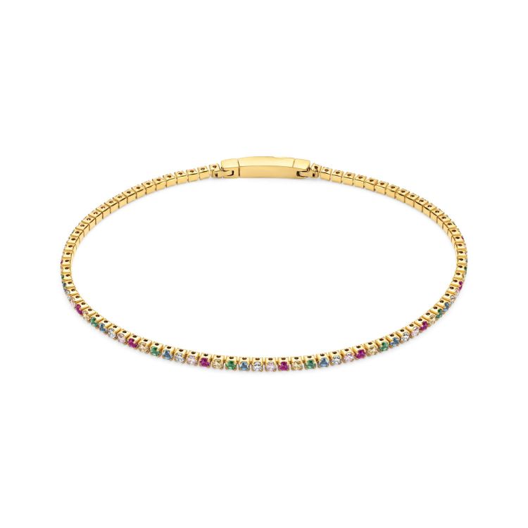 Armband gemaakt van 18 karaat verguld geplateerd 925 sterling zilver, gepolijst oppervlak en facetgesneden meerkleurige zirkonia.