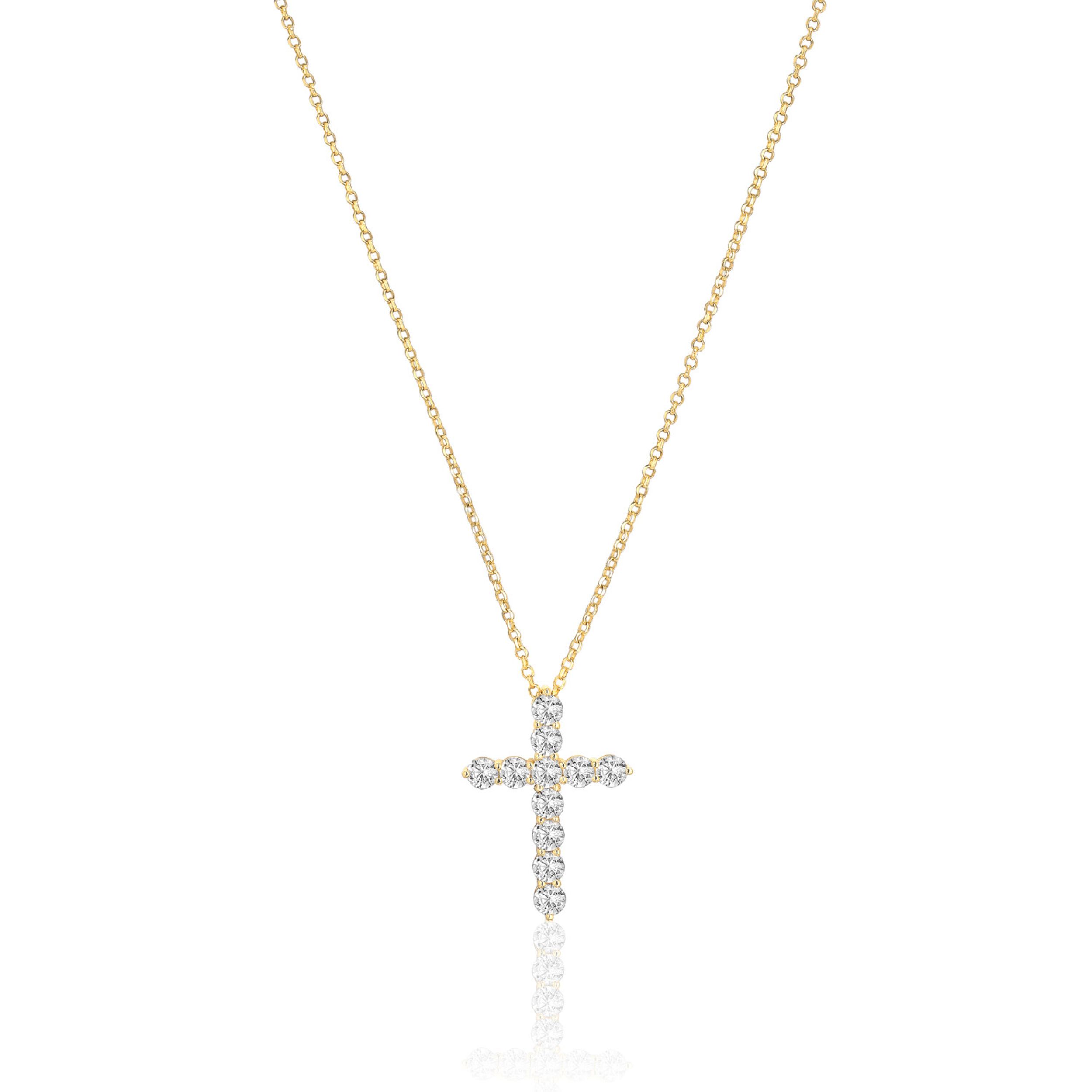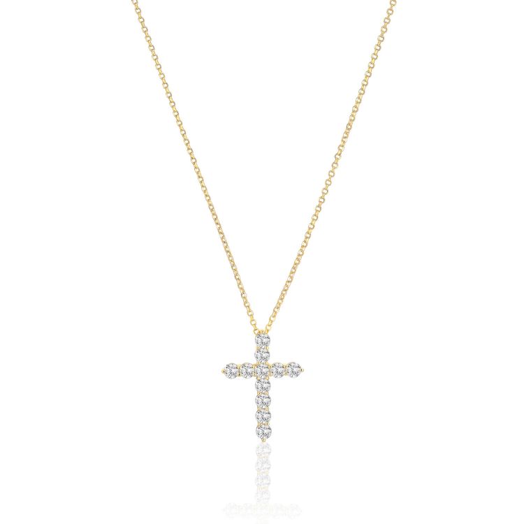Ketting gemaakt van 18 karaats verguld geplateerd 925 sterling zilver, gepolijst oppervlak en handset met facet geslepen witte zirkonia.