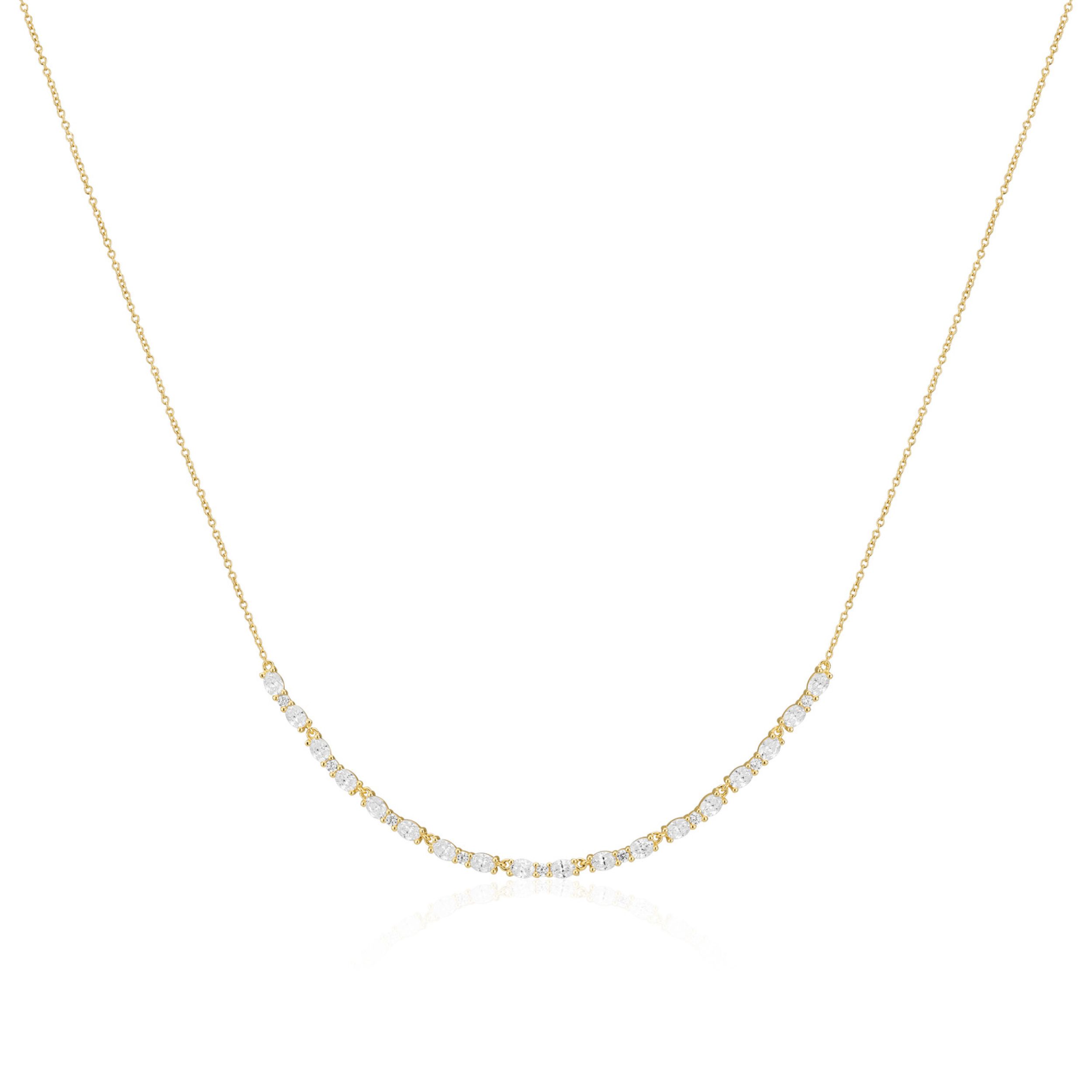 Ketting gemaakt van 18 karaats verguld geplateerd 925 sterling zilver, gepolijst oppervlak en handset met facet geslepen witte zirkonia.