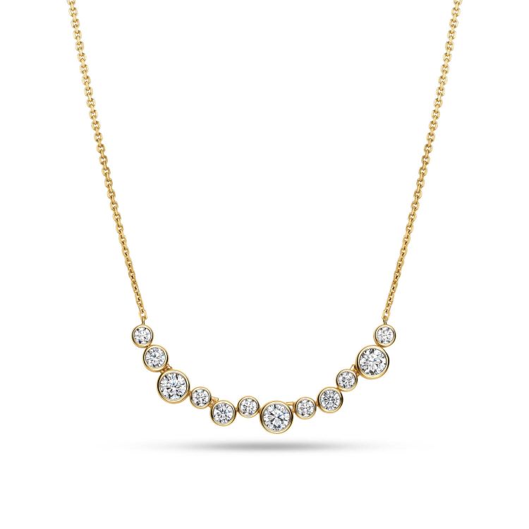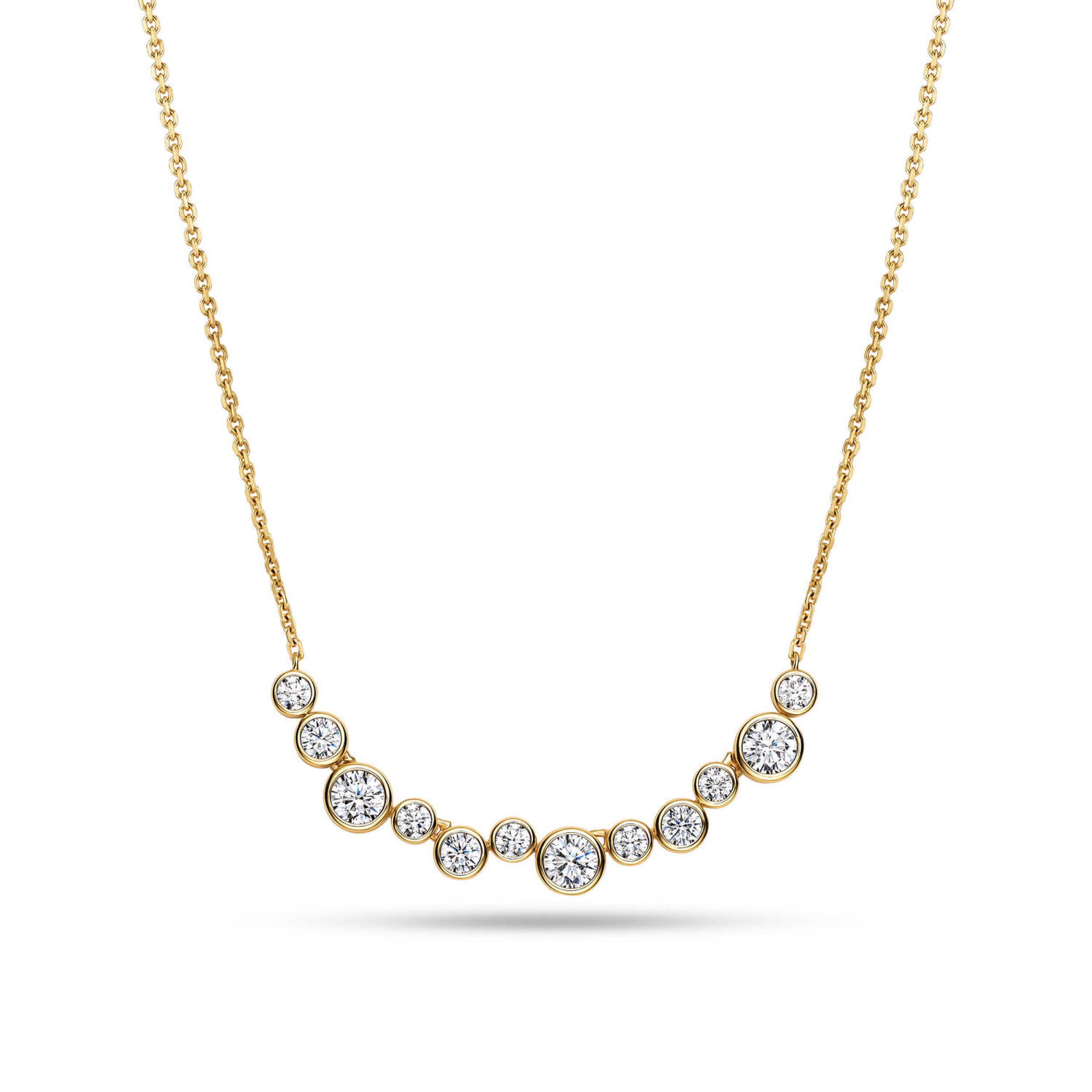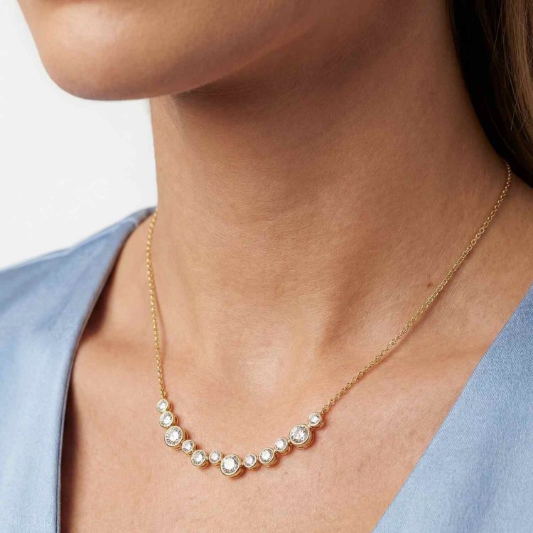 Ketting gemaakt van 18 karaats verguld geplateerd 925 sterling zilver met gepolijst oppervlak en een handset met facet gesneden witte zirkonia.