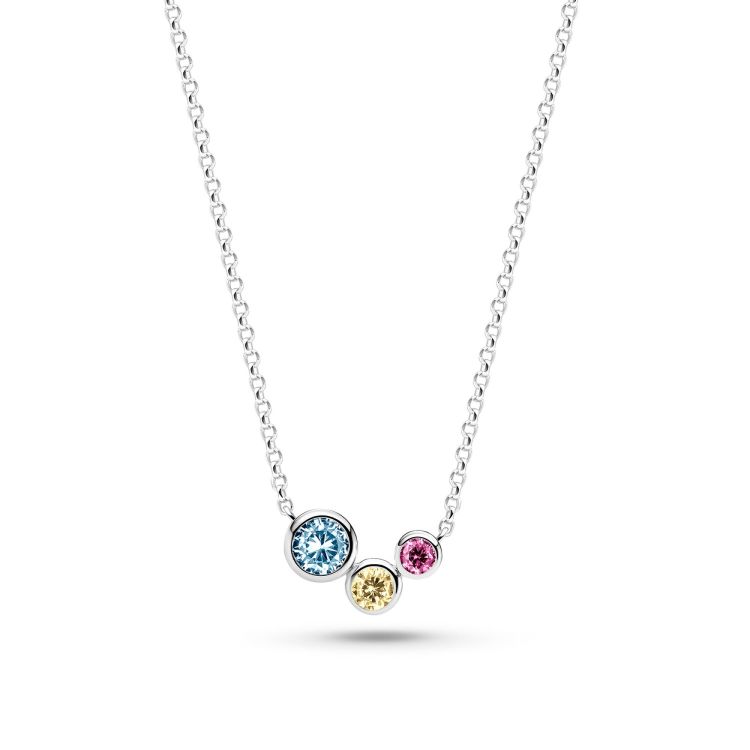 Ketting gemaakt van Rhodium 925 sterling zilver, met een gepolijst oppervlak en een handset met facetgesneden meerkleurige zirkonia.