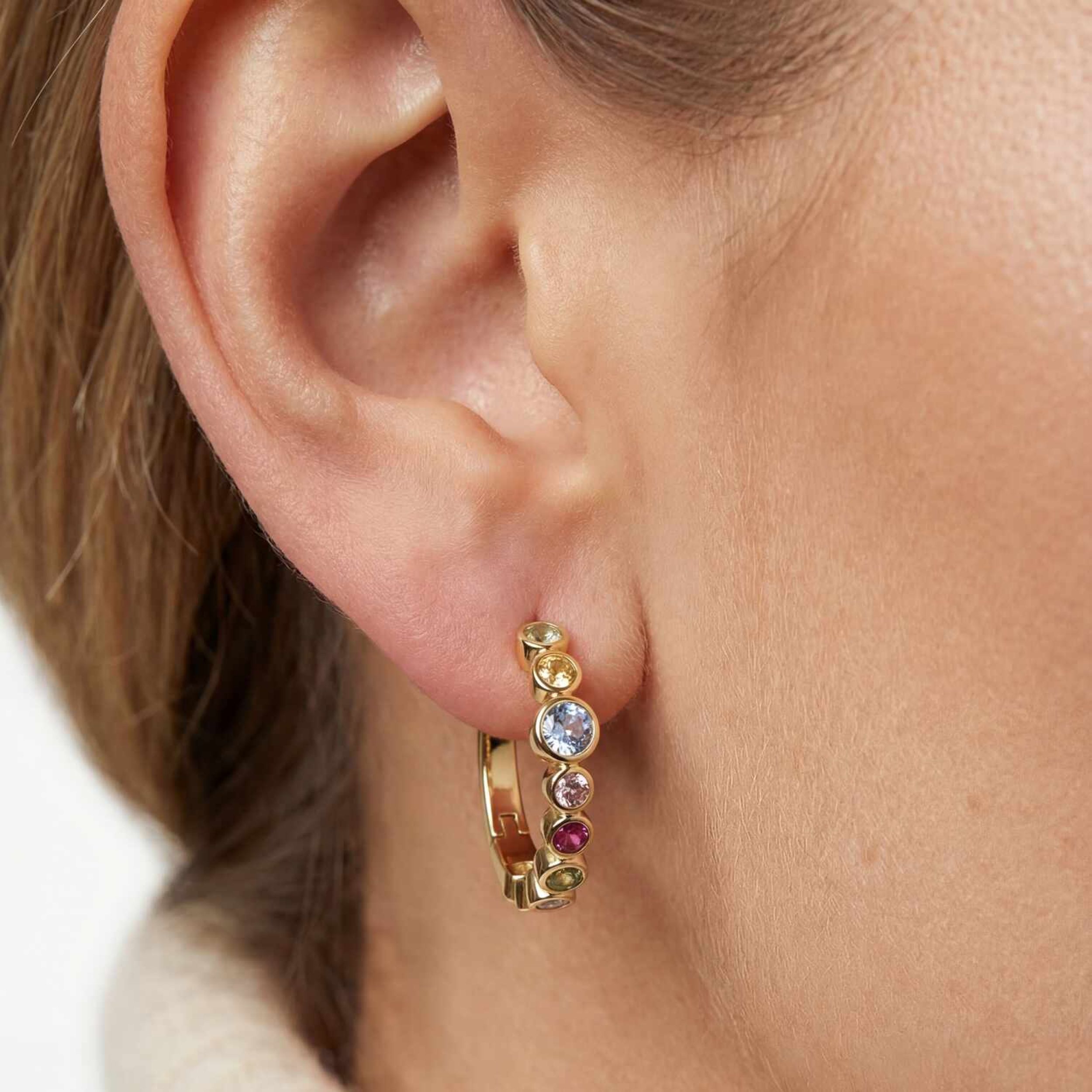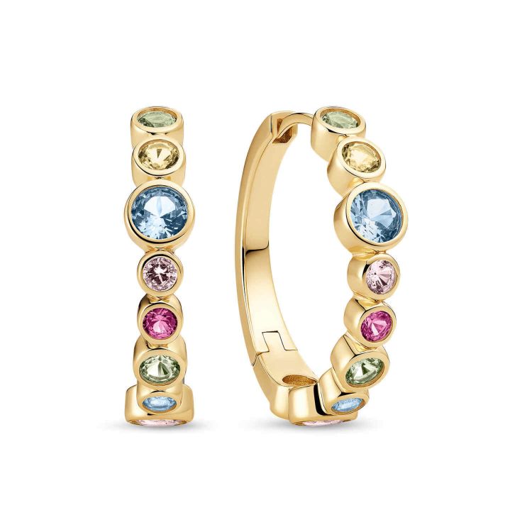Oorbellen gemaakt van 18 karaats verguld geplateerd 925 sterling zilver, met een gepolijst oppervlak en een handset met facetgesneden meerkleurig zirkonia.