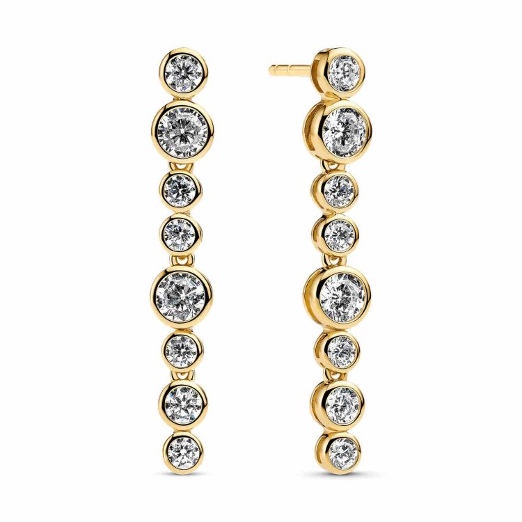 Oorbellen gemaakt van 18 karaats goud geplateerd 925 sterling zilver, met een gepolijst oppervlak en een handset met facetgesneden witte zirkonia.