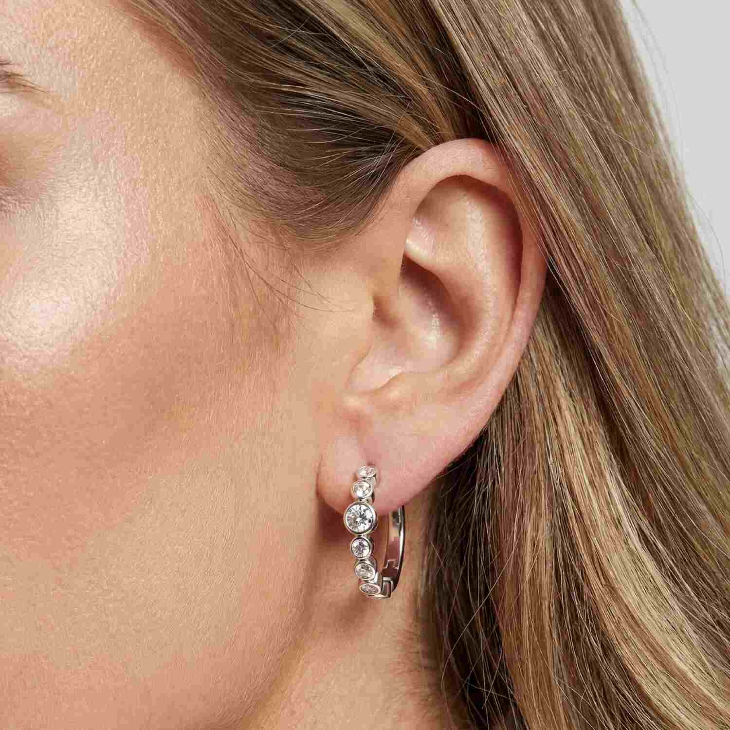 Oorbellen gemaakt van Rhodium 925 sterling zilver, met een gepolijst oppervlak en een handset met facetgesneden witte zirkonia.