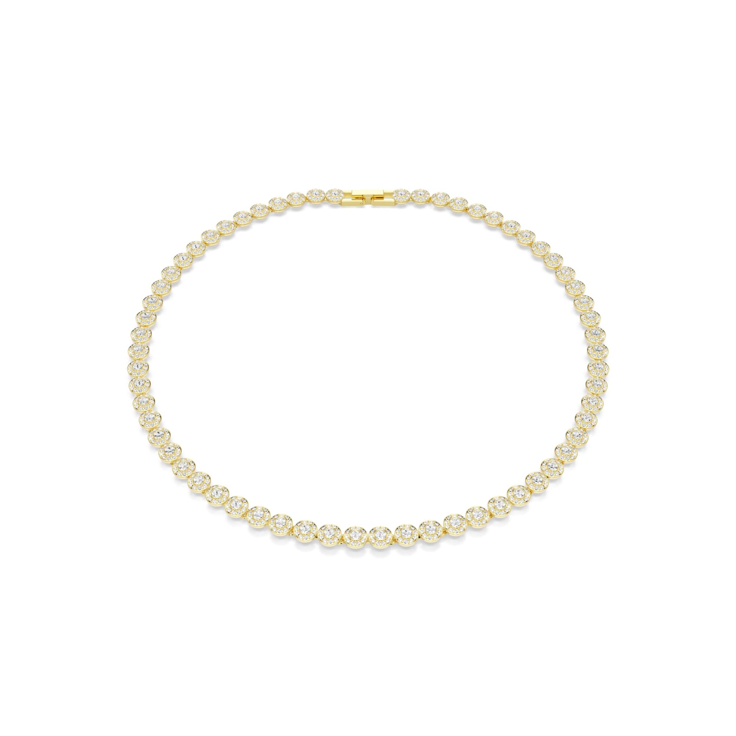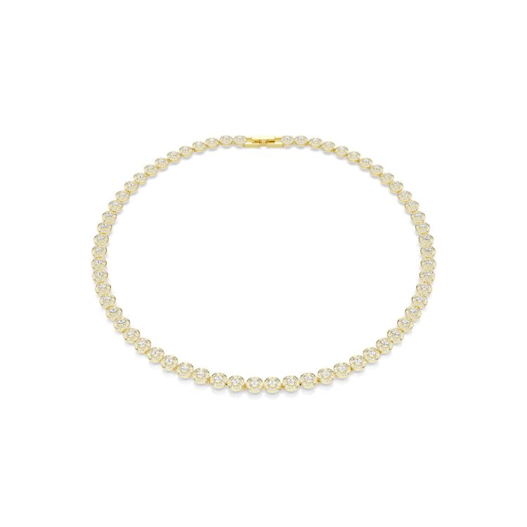 Met een uitstraling van tijdloze verfijning is deze stralende Una-ketting een van Swarovski's meest gekoesterde silhouetten. Het goudgekleurde ontwerp heeft een volledige omlijsting van grote ronde geslepen kristallen, elk omlijst door een halo van heldere pavé. De vouwsluiting zorgt voor een naadloze sluiting, terwijl de extra verlengstuk ervoor zorgt dat je de sieraden kunt aanpassen voor zowel comfort als formaat. Een perfecte manier om de glamour in je dagelijkse styling te accentueren.