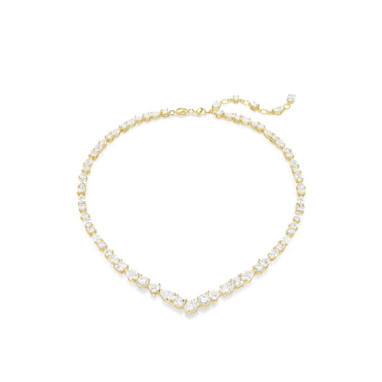 Omarm de pure verfijning van deze opvallende Mesmera-ketting. Het stralende ontwerp is gemaakt met een rij opvallende Swarovski Zirkonia op een goudkleurige zetting in een verrassende mix van slijpvormen en formaten. Voor extra luxe is het verlengstuk afgewerkt met een karabijnsluiting en een verstrooiing van Swarovski Zirkonia. Geef dit cadeau aan een geliefde als een stijl die keer op keer gedragen kan worden.
