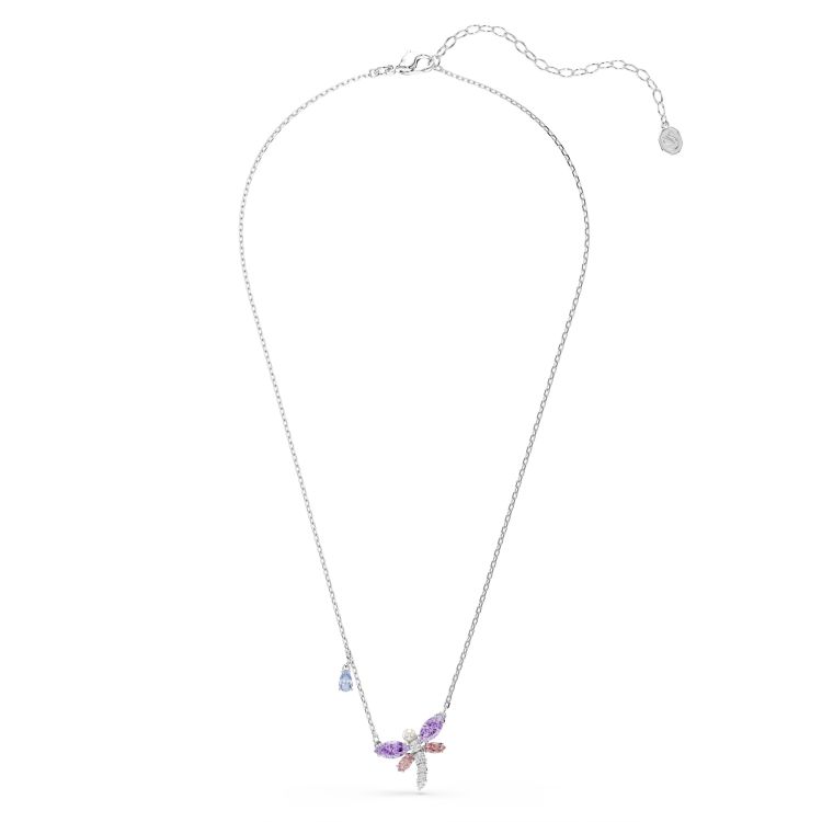Deze evocatieve libelle-hanger, een symbool van transformatie, wordt gedragen aan een delicate ketting en heeft een centraal motief met rhodium toplaag en een pavé van heldere Swarovski Zirkonia. Een enkele Swarovski Crystal Pearl is geplaatst bij de kop, terwijl de pastelkleurige vleugels roze en paarse tinten onthullen, die prachtig passen bij andere libelle-stukken uit dezelfde sieradenlijn.