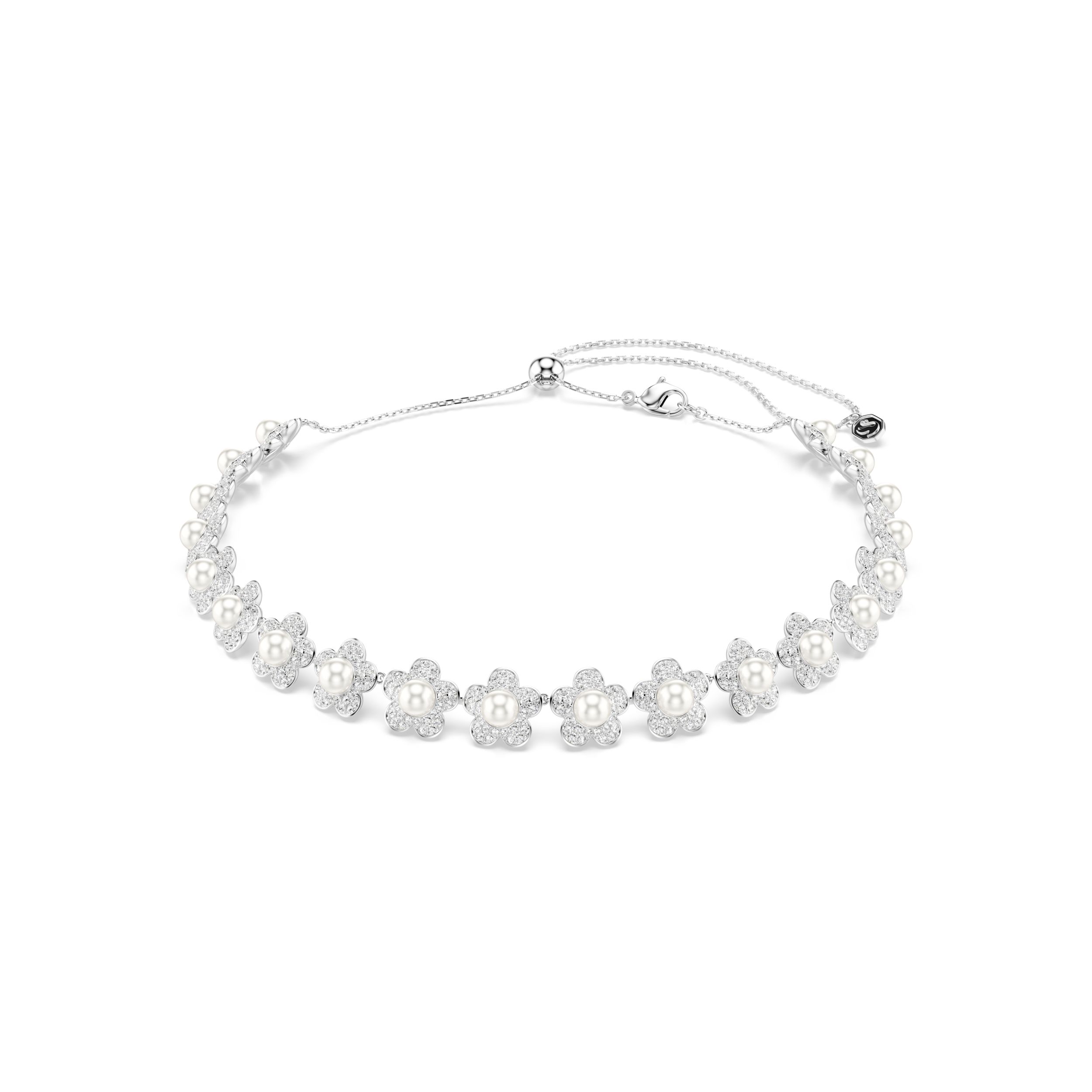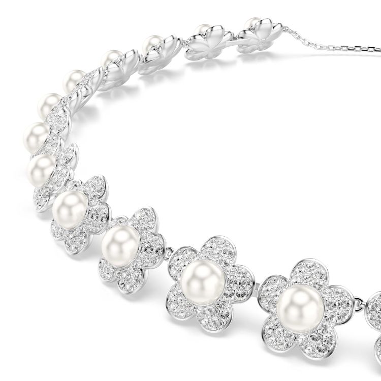 Laat uw verfijning stralen met deze schitterende ketting met een doorlopende streng delicate bloemen, elk met een Swarovski Crystal Pearl in het hart en blaadjes versierd met glinsterende pavé. Het op de natuur geïnspireerde ontwerp is ideaal voor alledaagse luxe en kan aan de achterkant worden versteld met het schuifmechanisme.