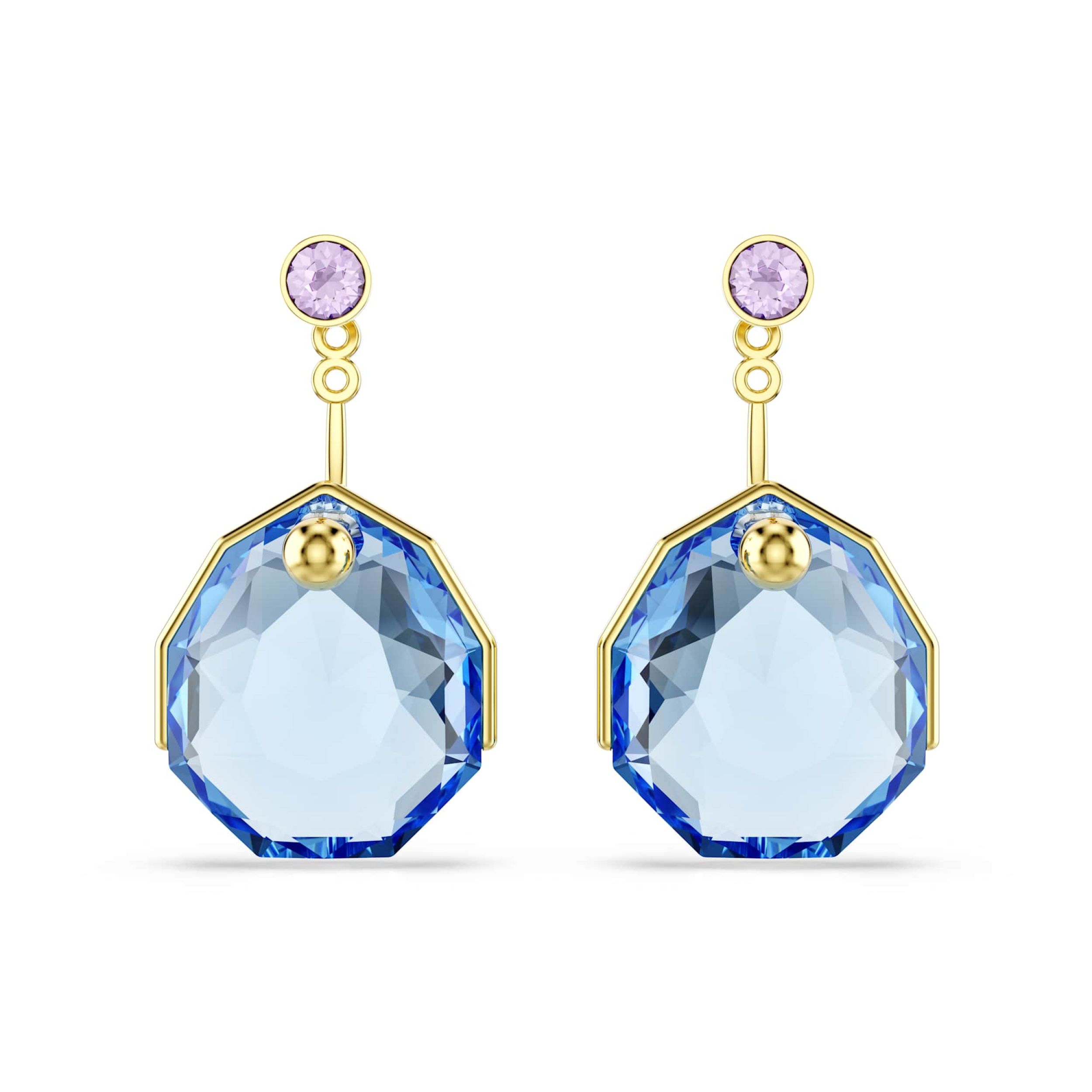Swarovski Gema oorbeljasjes, Blauw, Goudkleurige toplaag