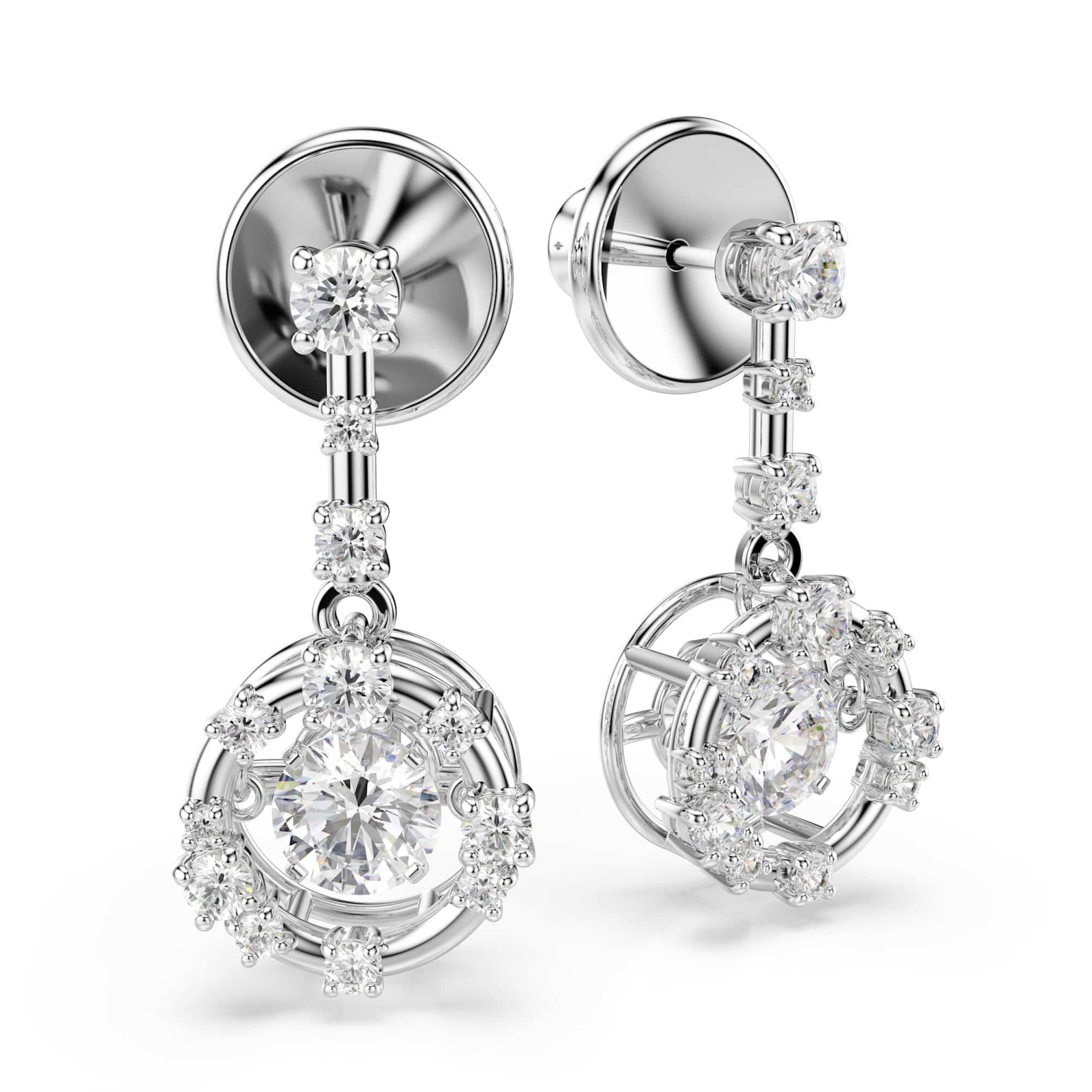 Gemaakt voor maximale uitstraling, laten deze met sterren geïnspireerde oorbellen elke outfit stralen. Elk rhodiumgeplateerd stuk heeft een dansende steen in het midden, die eindeloze reflecties produceert, terwijl kleinere Swarovski Zirconia rond de metalen frames en staven zijn geplaatst. Draag ze met de bijpassende armband of hanger om je stijl de kosmos in te lanceren.