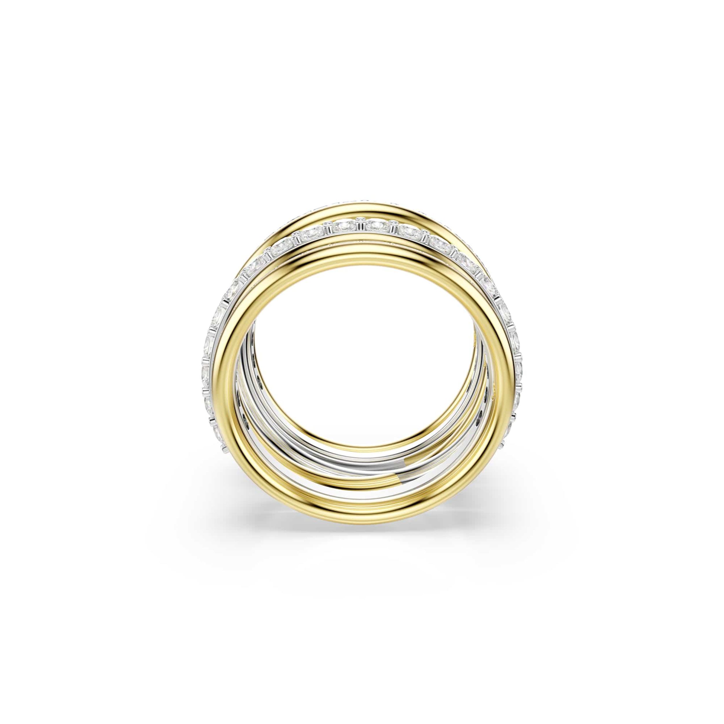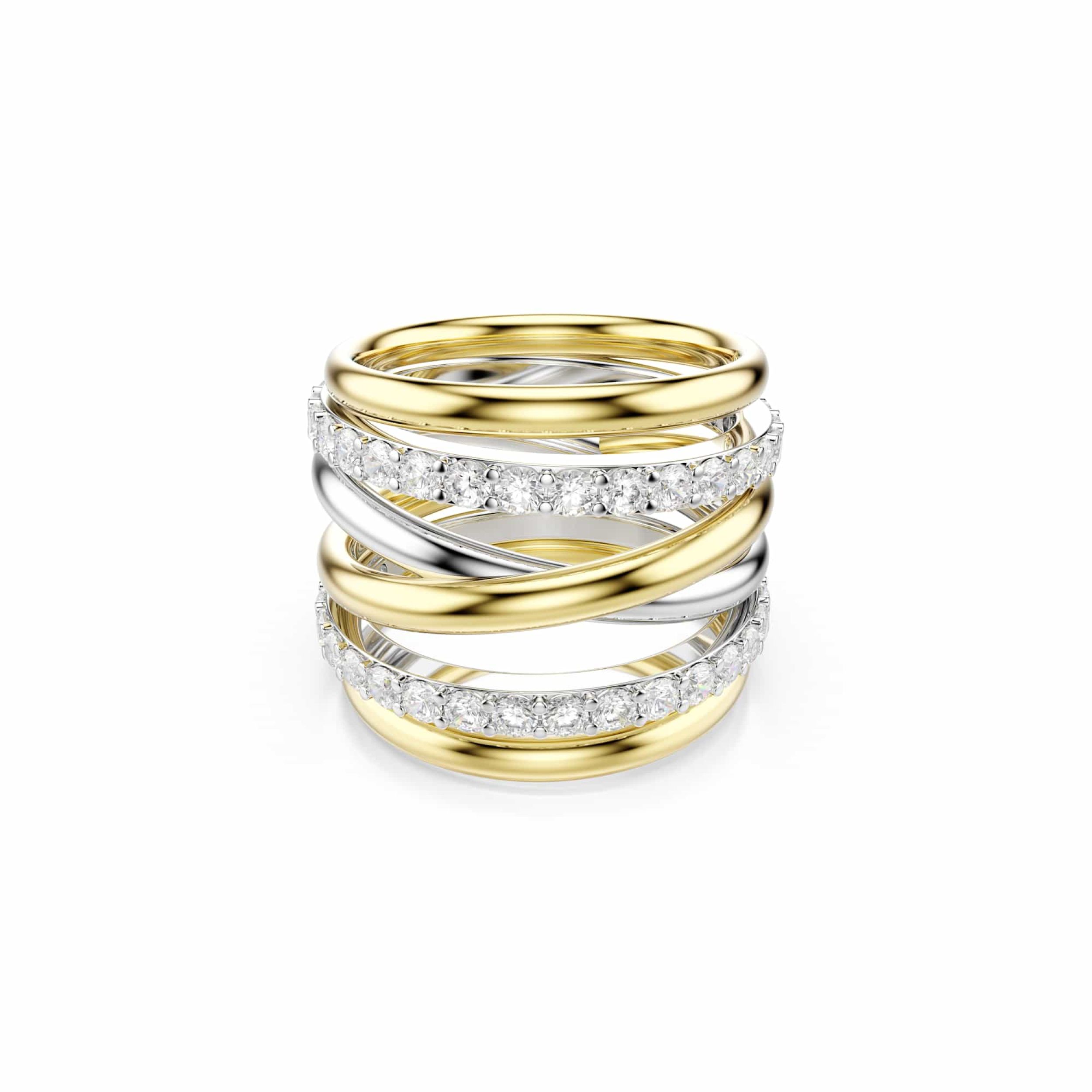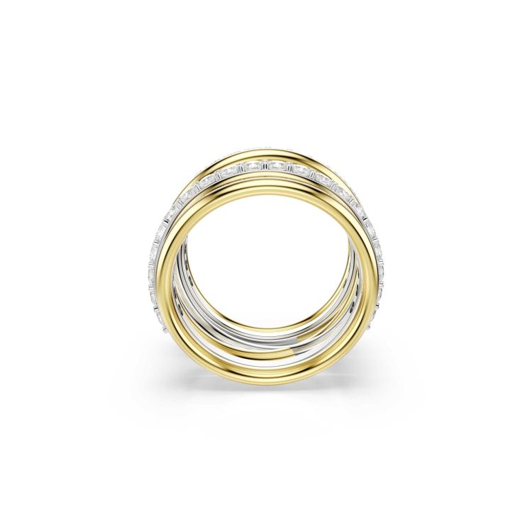 Om uw stijl veelzijdigheid te geven, bestaat dit Swarovski-sieraad uit drie ringen die afzonderlijk kunnen worden gedragen of gestapeld voor een dynamische combinatie. De gedraaide ringen, die het kenmerkende silhouet van de Hyperbola-familie weerspiegelen, combineren een rhodium en goudkleurige toplaag, samen met heldere Swarovski Zirkonia in delicate Round-slijpvormen. Draag ze met bijpassende oorbellen of een ketting om de hypnotiserende look te benadrukken.