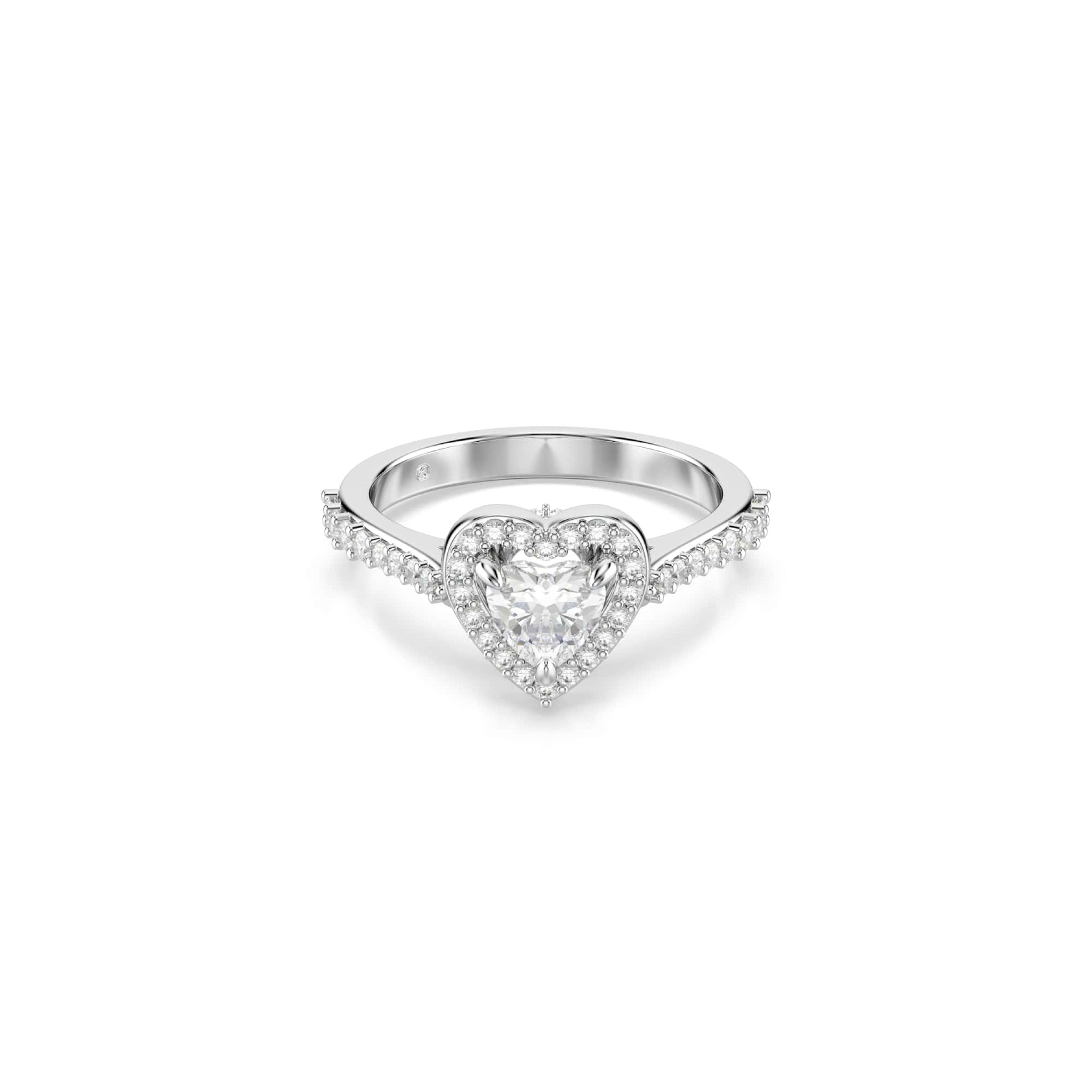 Deze hartvormige Una-ring is een ontwerp vol licht en liefde. De rhodiumbeklede band is bekleed met kristallen en heeft een romantisch motief met een glinsterende Swarovski Zirconia in het midden. Het is de ultieme finishing touch van je meest elegante stijlmomenten.