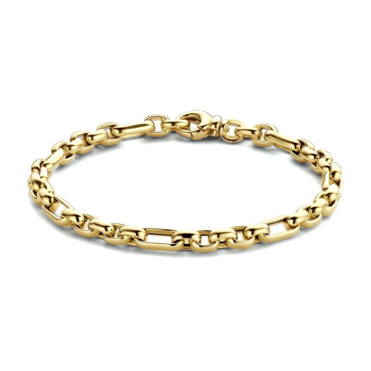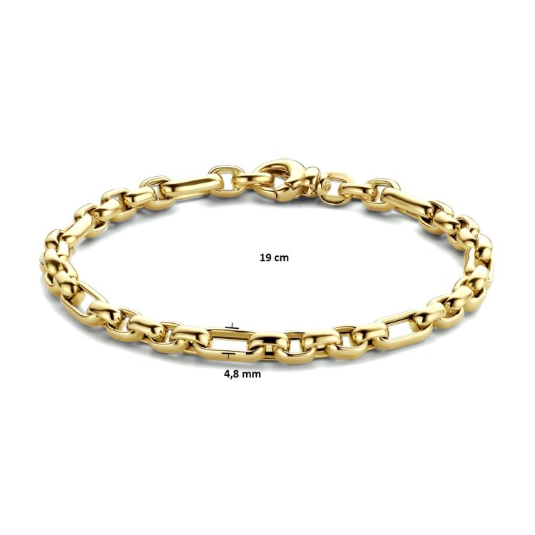 14k Geelgouden anker armband met een schakelbreedte van 4.8mm. De armband heeft een draaglengte van 19cm en een stevige karabijn sluiting.