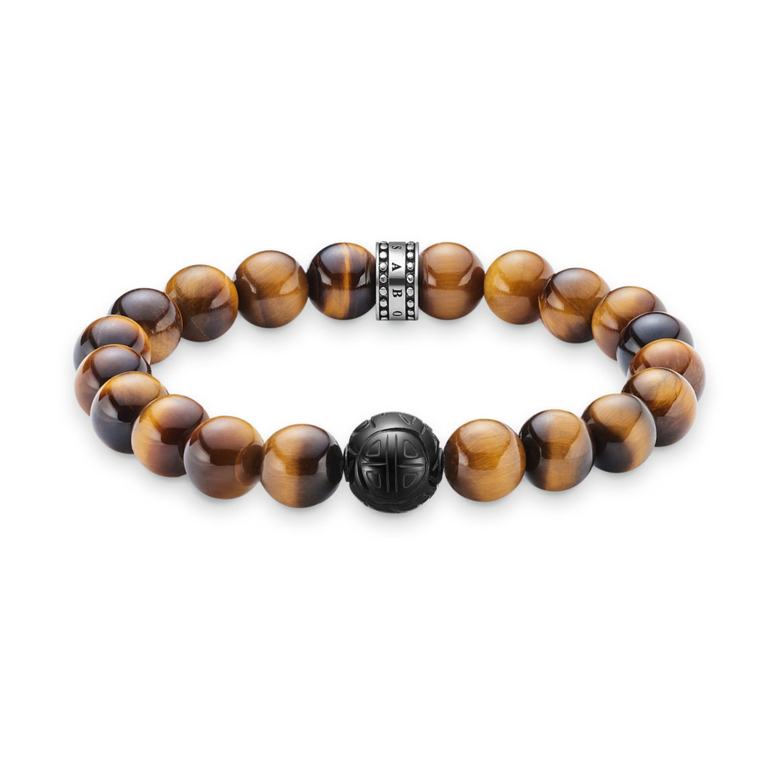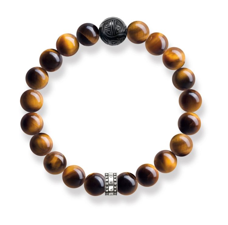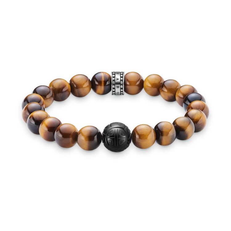Een Aziatische gravure geeft de zwarte obsidiaan zijn mysterieuze karakter en benadrukt zijn fluweelmatte uitstraling. De glanzende kralen gemaakt van tijgeroog onderstrepen het buitengewone uiterlijk van deze Rebel in hart armband.