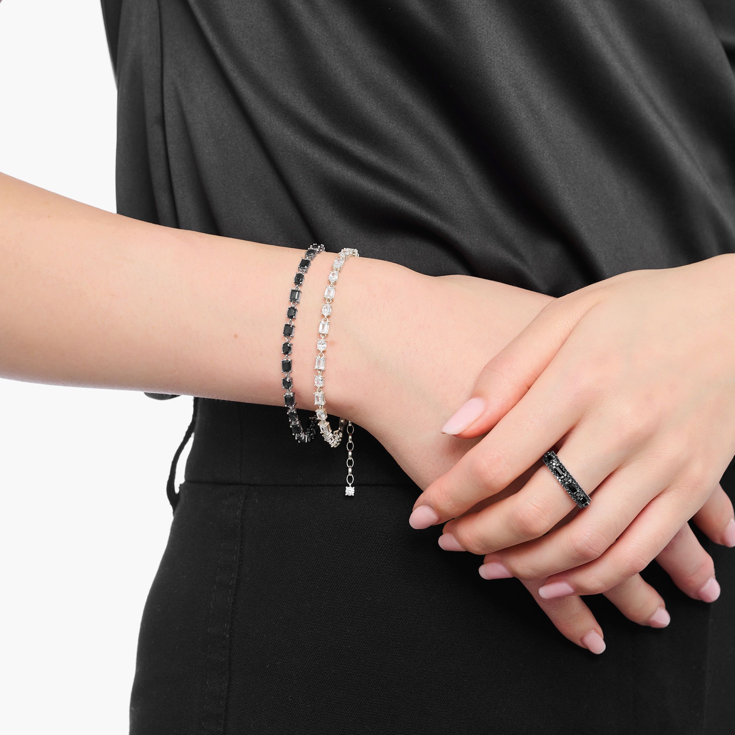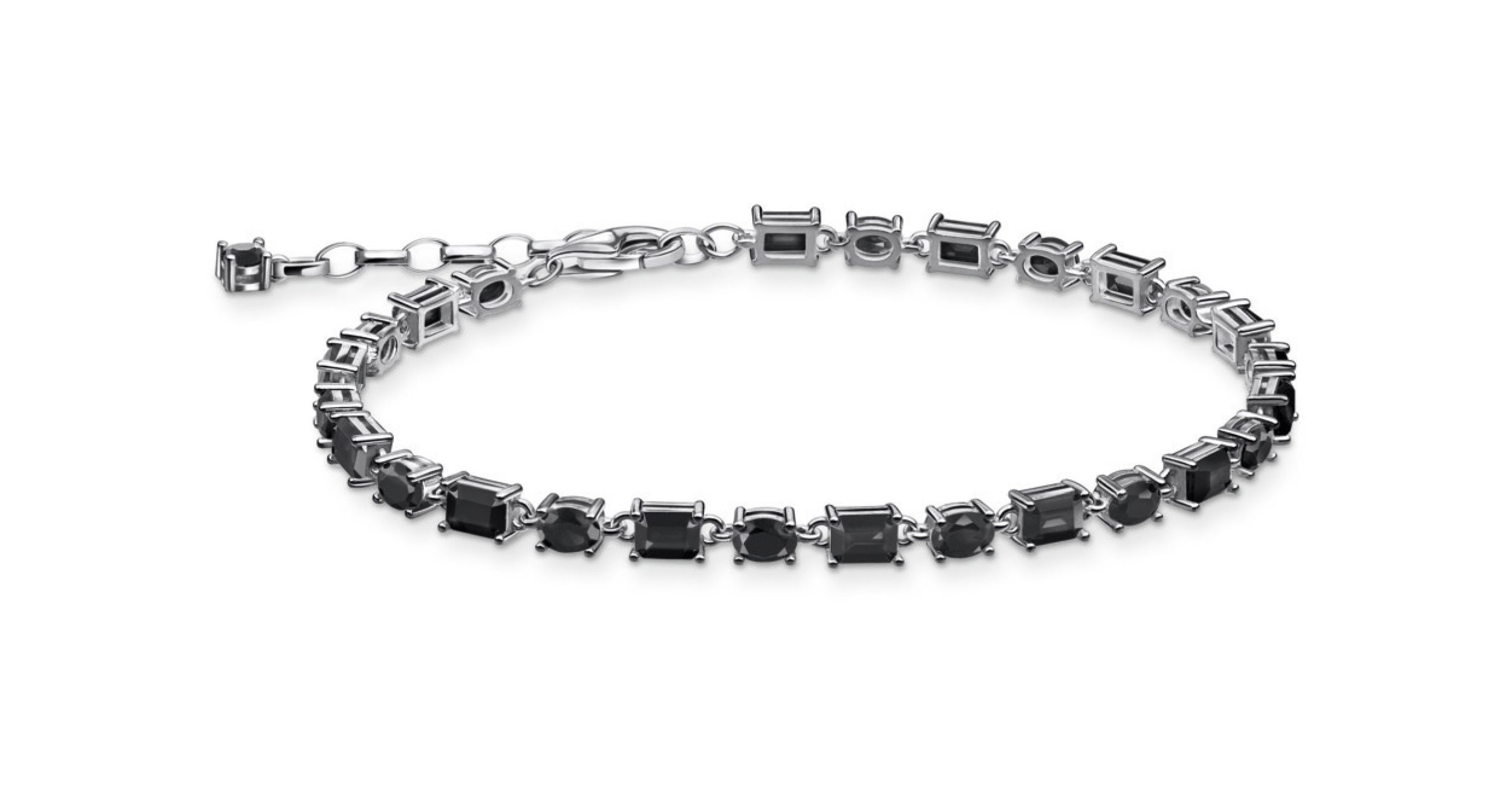 Met zijn grote, ovale en rechthoekige zwarte zirkonia stenen toont deze armband perfect het vakmanschap en de veelzijdige elegantie die kenmerkend zijn voor de sieraden van THOMAS SABO. Het ingetogen en tegelijkertijd verfijnde ontwerp zal gemakkelijk een van uw favoriete sieraden worden. U zult er dol op zijn en het keer op keer dragen – zonder extra moeite en op uw eigen, individuele manier. Deze armband van gerecycled, licht gezwart zilver wordt geleverd met een verlengkettinkje. Daarmee kun je de lengte aanpassen tussen 16 en 19 cm aan je pols.