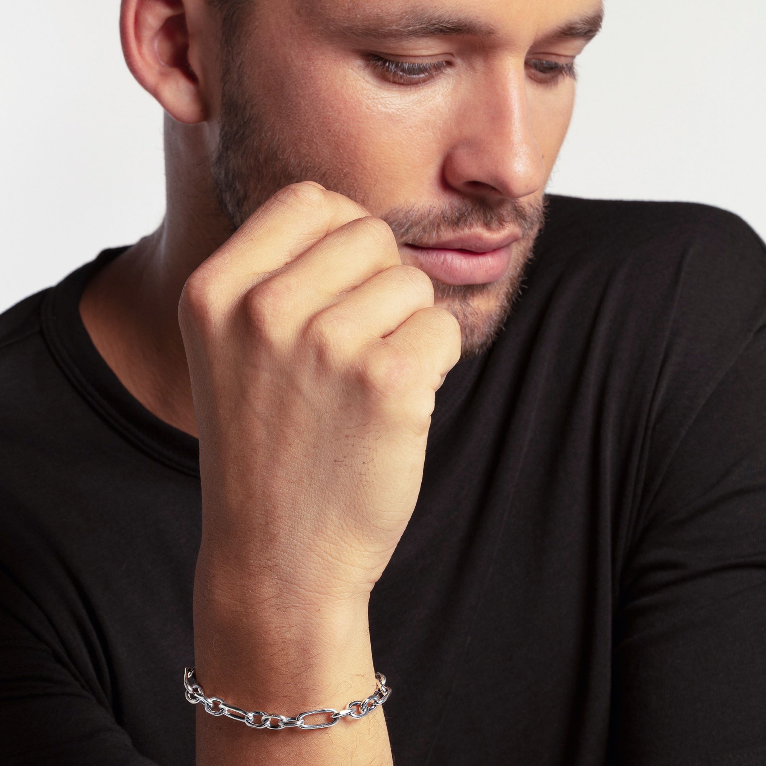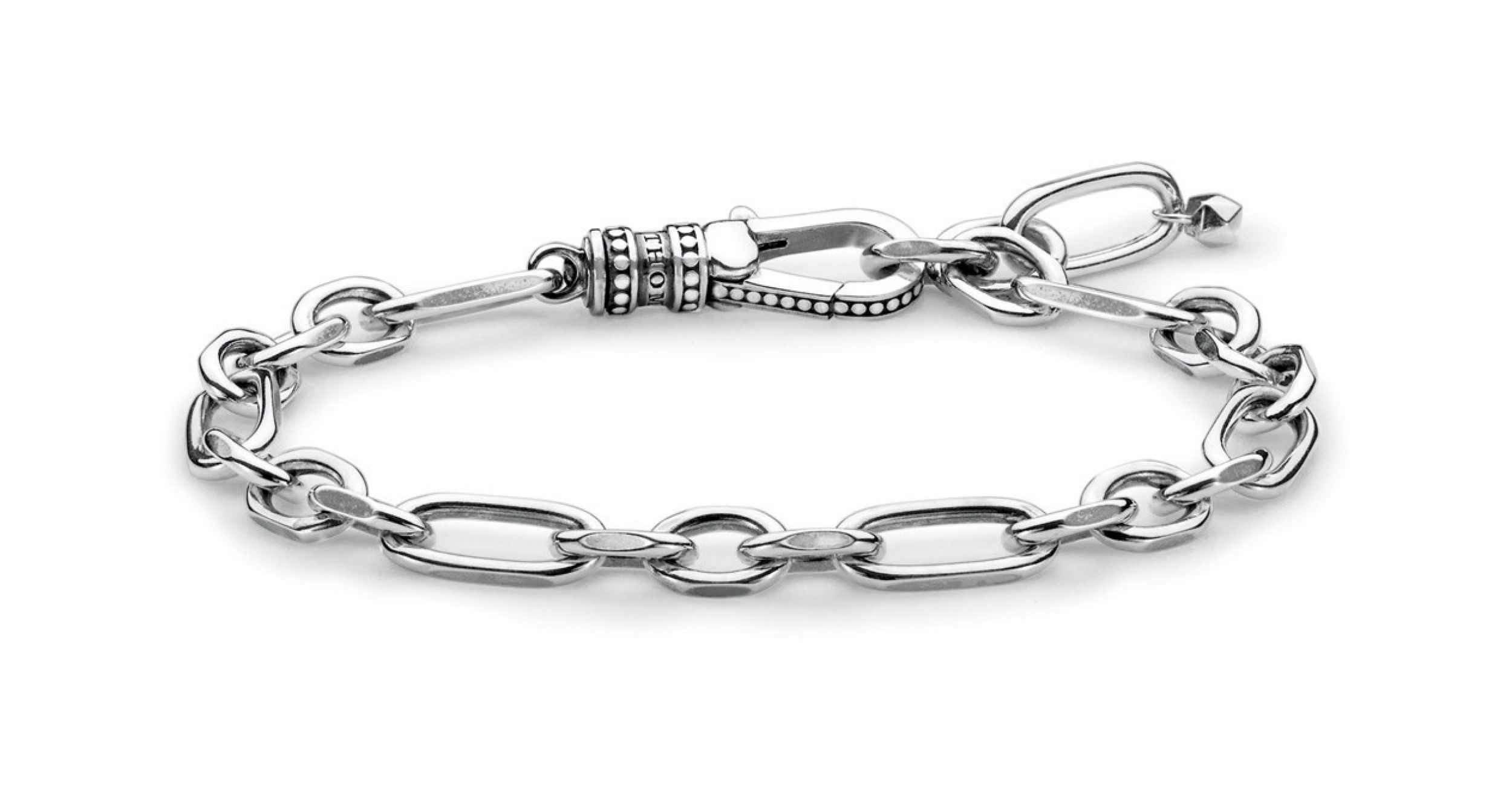 Cool en hedendaags: Deze armband is een moderne mode-uiting die verschillende schakelelementen combineert met de speciaal ontwikkelde THOMAS SABO kreeftensluiting die met de hand is gemaakt, en wordt gedragen met andere armbanden in een gelaagde look.