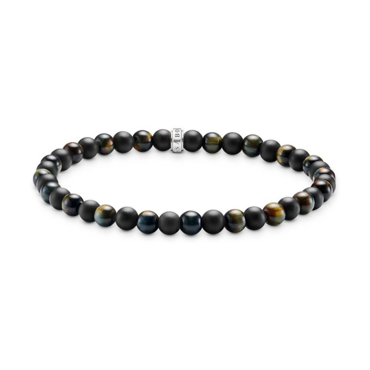 Draag deze stenen armband elke dag als statementstuk en persoonlijke talisman. Het is gemaakt van gepolijst, blauw-goud tijgeroog en matte, zwarte obsidiaan. Beide stenen hebben een speciale betekenis: obsidiaan met zijn diepzwarte kleur zou negatieve energieën aarden en afweren.