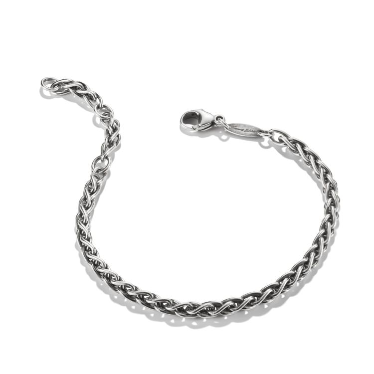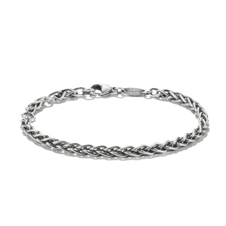 Ruvissa verfijning ontmoet westerse flair: deze slanke vlechtarmband bestaat uit fijn verweven schakels gemaakt van geoxideerd 925 sterling zilver en doet denken aan gevlochten leren teugels.