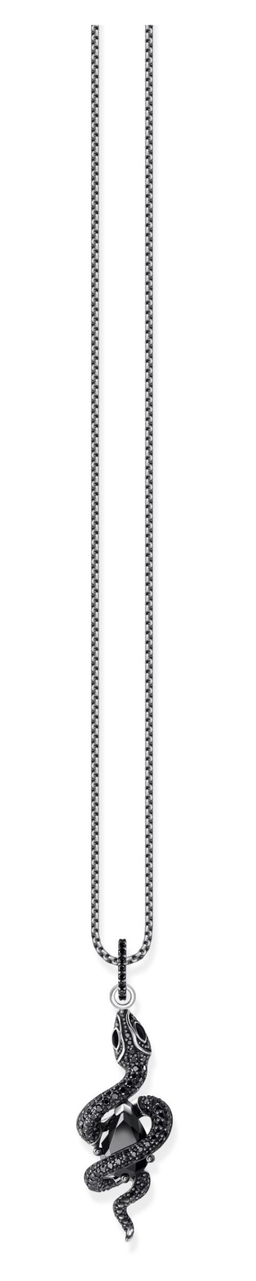 De slang wikkelt zich om de druppelvormige, zwarte zirkoniasteen en is ook het hoofdpersonage van veel legendes. Het is gemaakt van gerecycled 925 sterling zilver en wordt geaccentueerd door zwarte zirkonia pavé. Net als de ogen benadrukt het zijn mystieke charme. De ogen zijn met de hand geschilderd met zwart koud emaille. Met deze slangenhanger kun je je eigen verhaal vertellen en dit oude symbool opnieuw interpreteren.